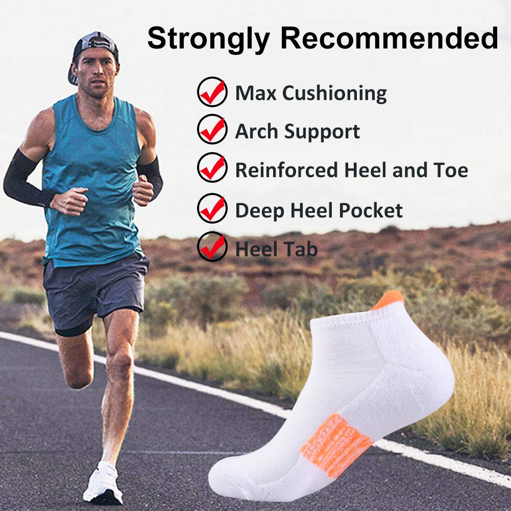 MAX CUSHIONING:Max Cushioning place in areas of high impact to reduce sock and foot pain during sports or daily activity,Comfortable to wear all day without irritating your feet skin. Arch support to improve foot arch fatigue and keep sock in place.