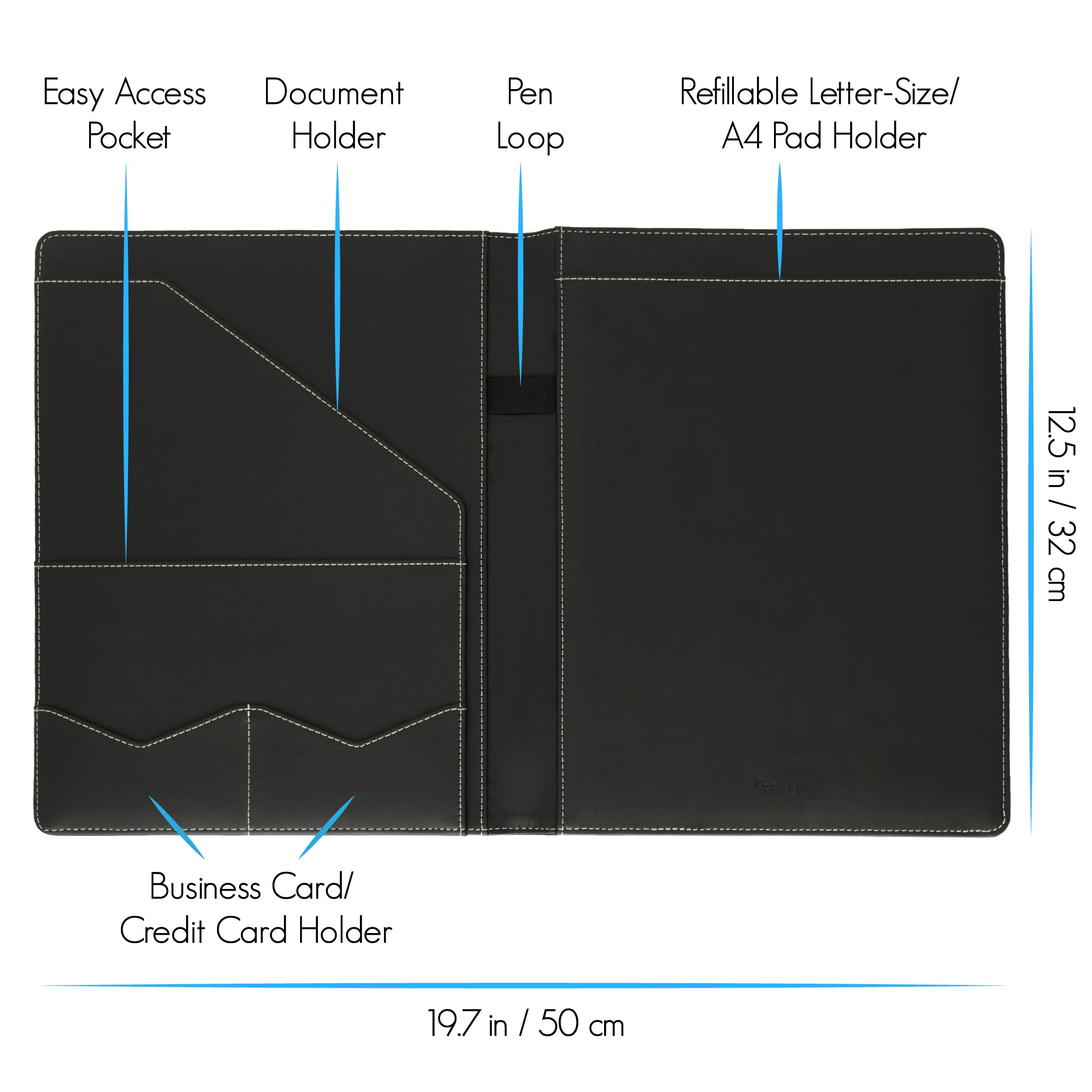 ✅ STYLE MEETS FUNCTION – Elegant design featuring convenient, safe pockets ideal for documents, business cards, travel tickets, pitch proposals & resumes. Includes a pen holder & refillable writing pad