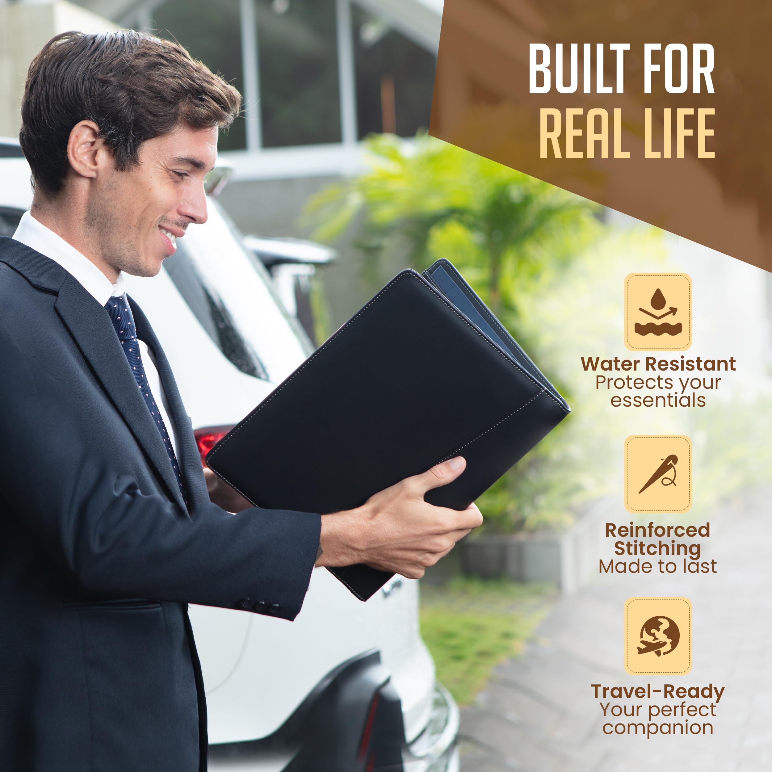 ✅ PREMIUM DURABILITY – Ideal for today’s hectic business travel schedules, this document holder is water resistant and reinforced with accent stitching