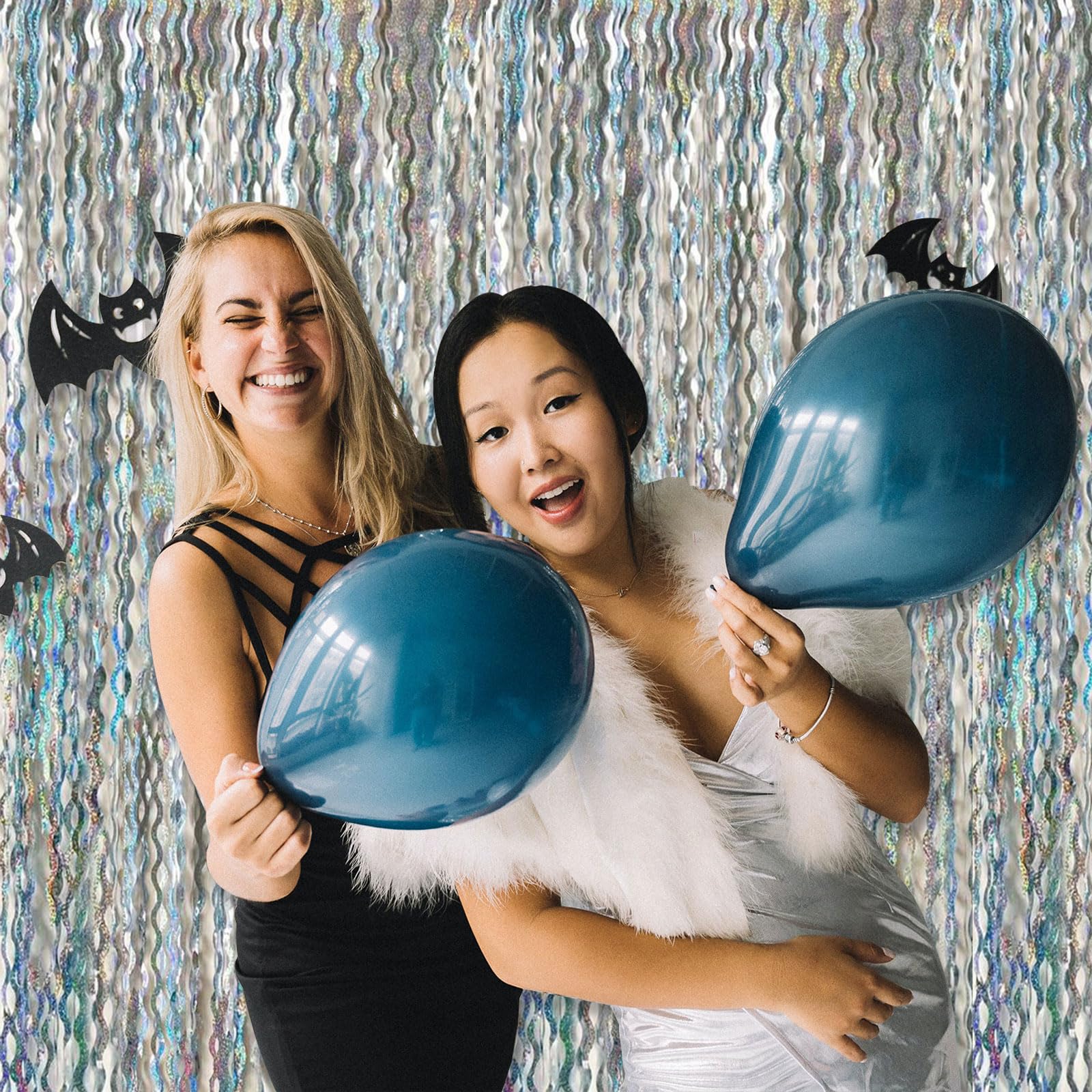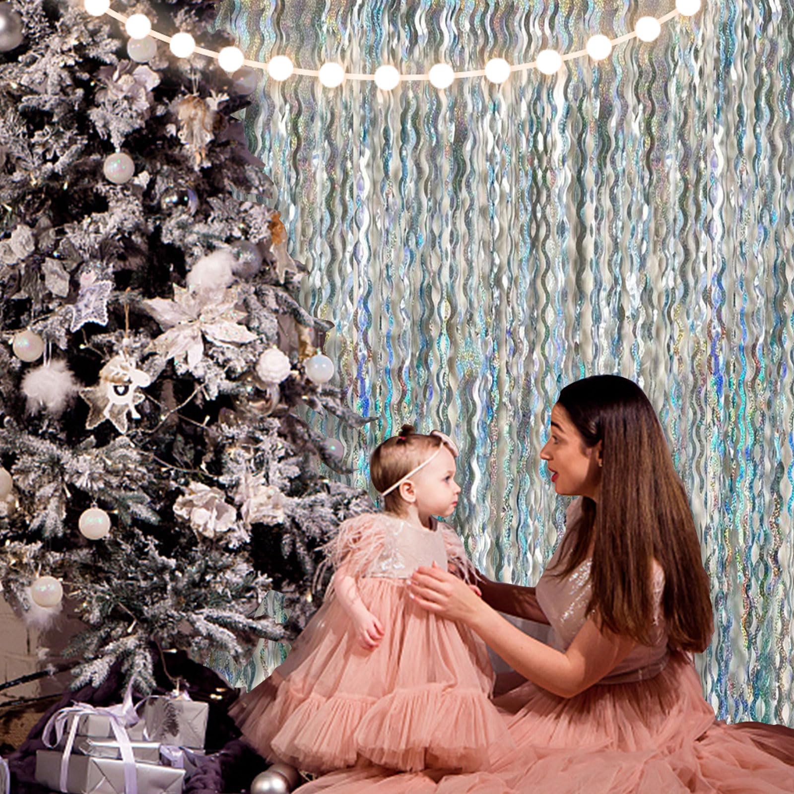 Silver Birthday Backdrop:2Pack, each curtains size is 3.28 ft x 6.56 ft, enough length foil fringe backdrops are perfect for the door, wall and table,feel free to cut to any length you want.