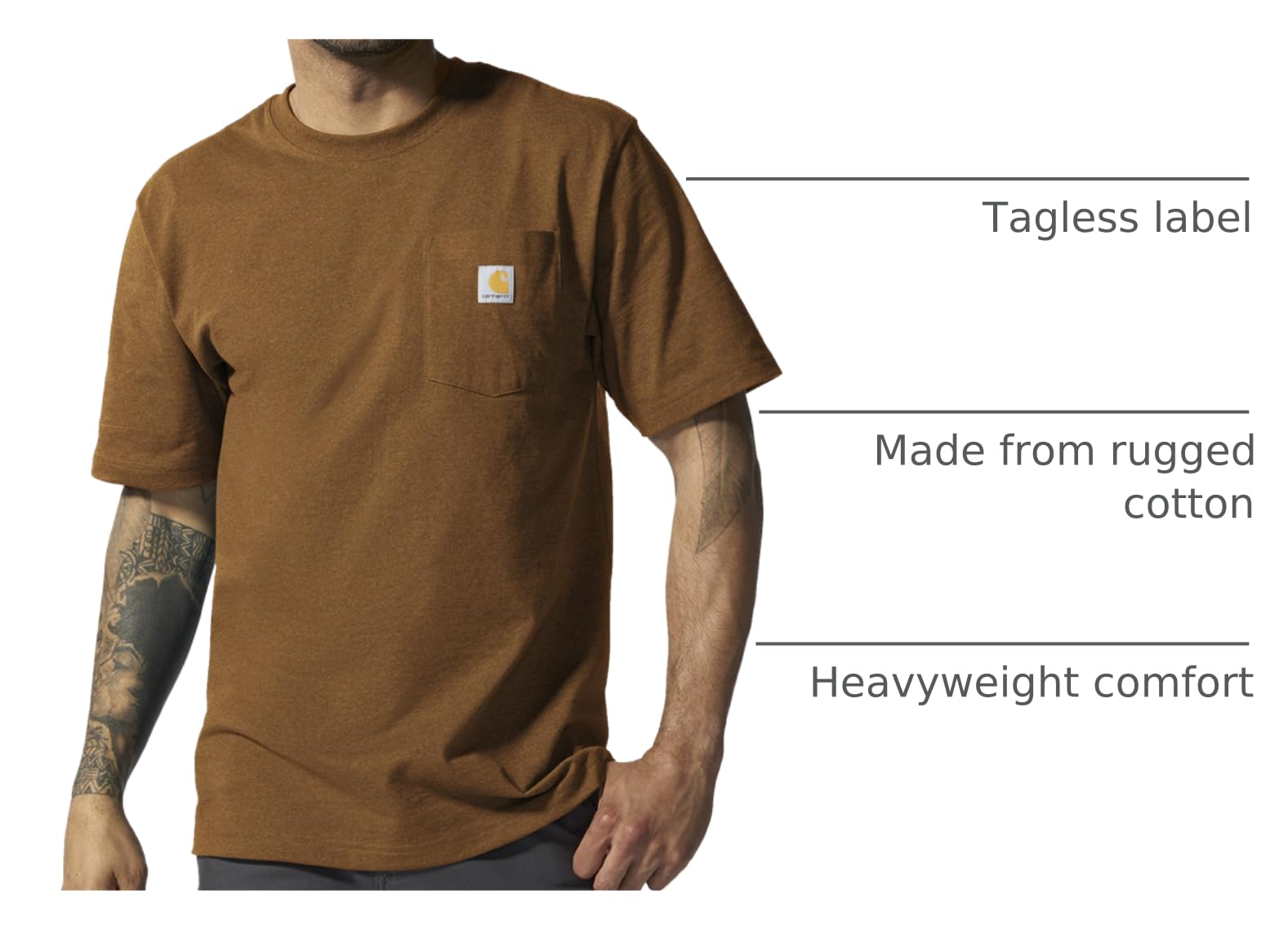 Description Elevate your everyday essentials with our K87 Men's Heavyweight Crewneck T-Shirt, the perfect blend of comfort, style, durability and safety. Made from 100% rugged cotton, this tee offers a soft, breathable feel that keeps you comfy all day long, whether you're at work or enjoying casual downtime. Designed with a loose fit it provides a boxy silhouette that ensures both style and freedom of movement. This plain, basic t-shirt features a front pocket, adorned with our iconic patch, for added convenience and practicality. Its heavyweight construction delivers a thick, quality fabric that was built to handle tough conditions, making it ideal for work or outdoor activities. The soft cotton keeps you cool and comfortable, while the loose fit makes it a versatile choice for any occasion. Available in sizes XLT and XL, and a variety of colors including neon high vis, this shirt is perfect for big and tall men who need a more spacious fit. Whether youβre looking for an essential piece for your work wardrobe or a stylish, comfy tee for everyday wear, this t-shirt delivers in both fashion and function. Comfortable, durable, and timelessβthe Carhartt K87 is a must-have for every manβs wardrobe.