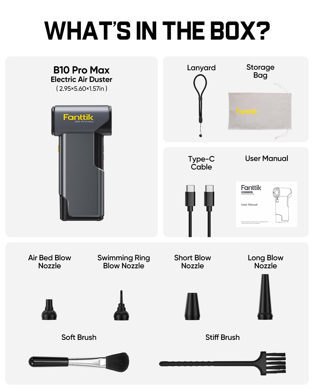Long-Lasting Battery: With built-in 2x 4000 mAh lithium batteries, this battery duster tool delivers up to 210 minutes of run time on every charge. Equipped with Type-C, it also doubles as a little backup power bank (28.8Wh), to charge electronic devices when used outdoors