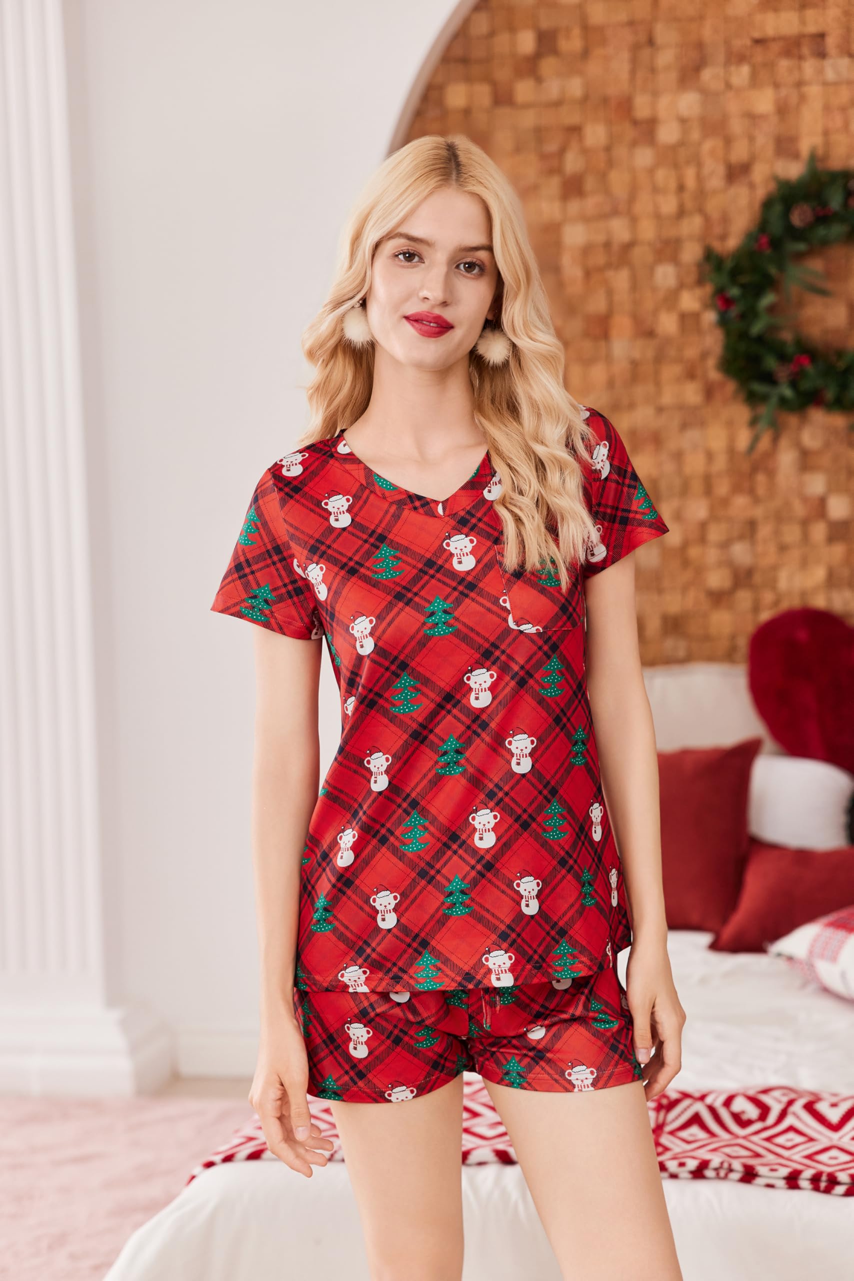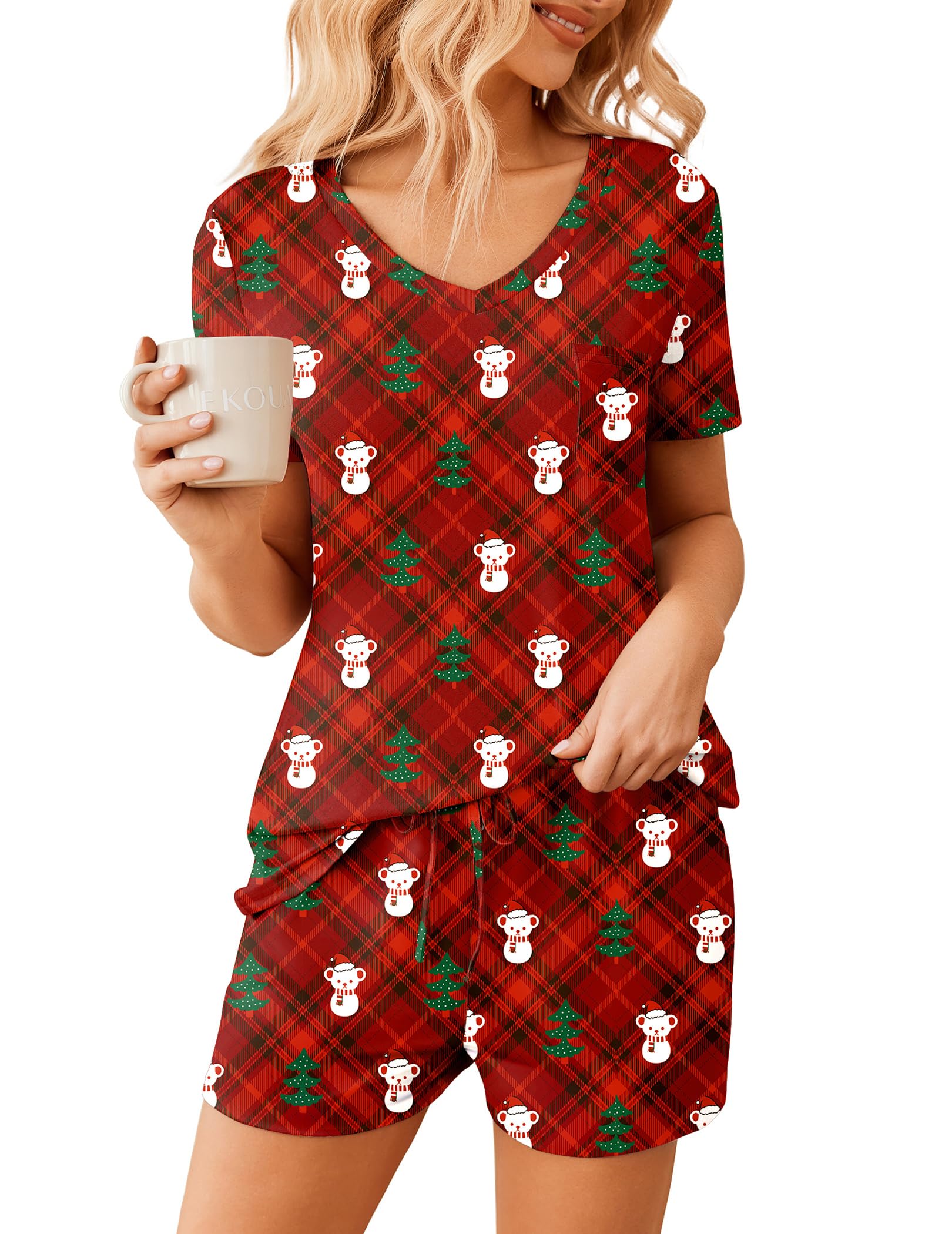 FEATURES: pajama sets for women 2 piece, pj sets for woman, V neck women's pajama sets, short sleeve T-shirt, drawstring elastic waist shorts.