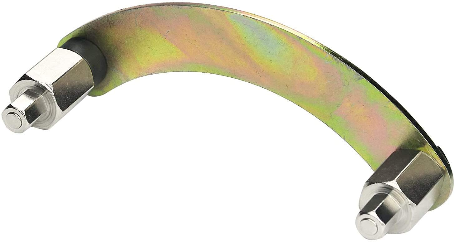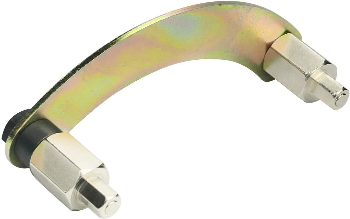 Locks the LH side cam sprockets from turning when the timing belt is removed; Prevents cam sprockets from spinning when belt is removed and eliminates potential valve damage; Saves time! Makes timing belt changes faster and easier especially when done with one person; Strong neodymium magnets ensure the tool stays in place even if bumped; Curved plate allows easy viewing of sprocket timing marks