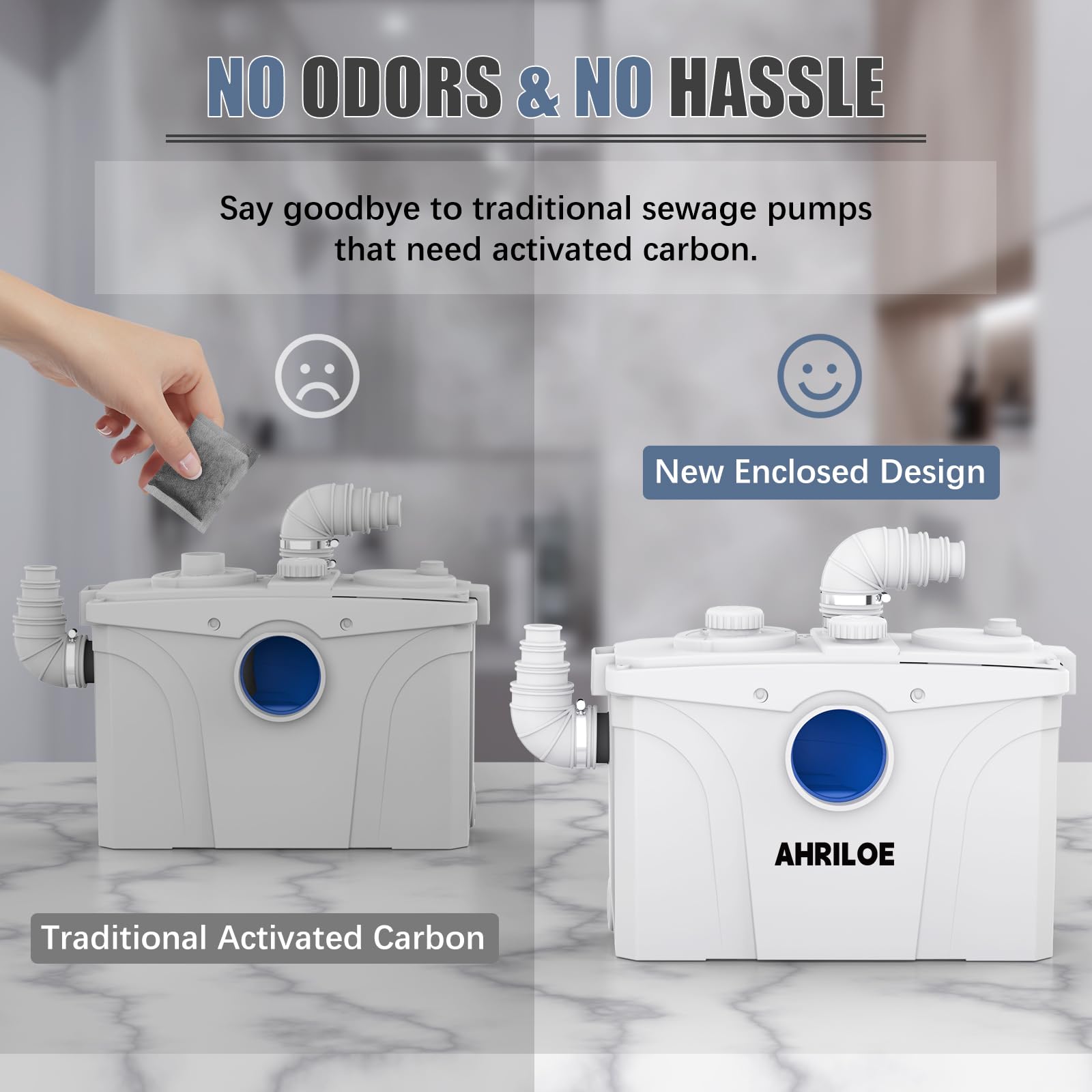 No Odors & No Hassle: Say goodbye to traditional sewage pumps that need activated carbon. New enclosed design keeps odors trapped inside, saving you the hassle of replacing carbon regularly. It's a permanent fix for your drainage problems. You don't need to connect ventilation ducts, allowing you to complete the installation more efficiently and quickly. Please keep the manual and contact us in case of problems.