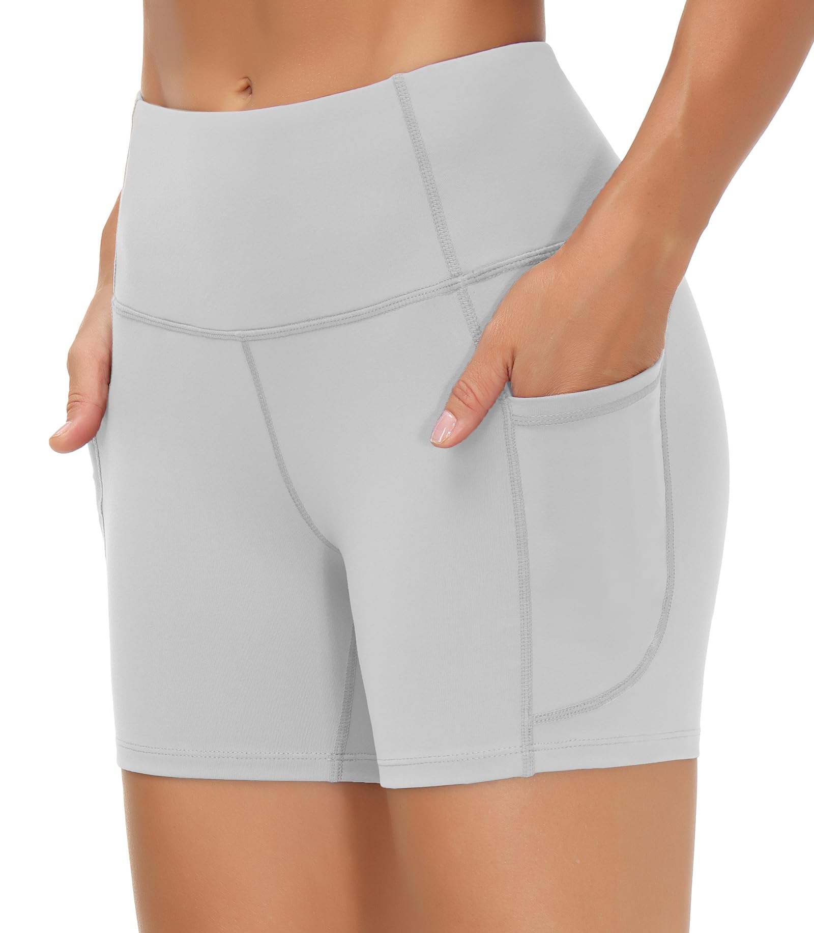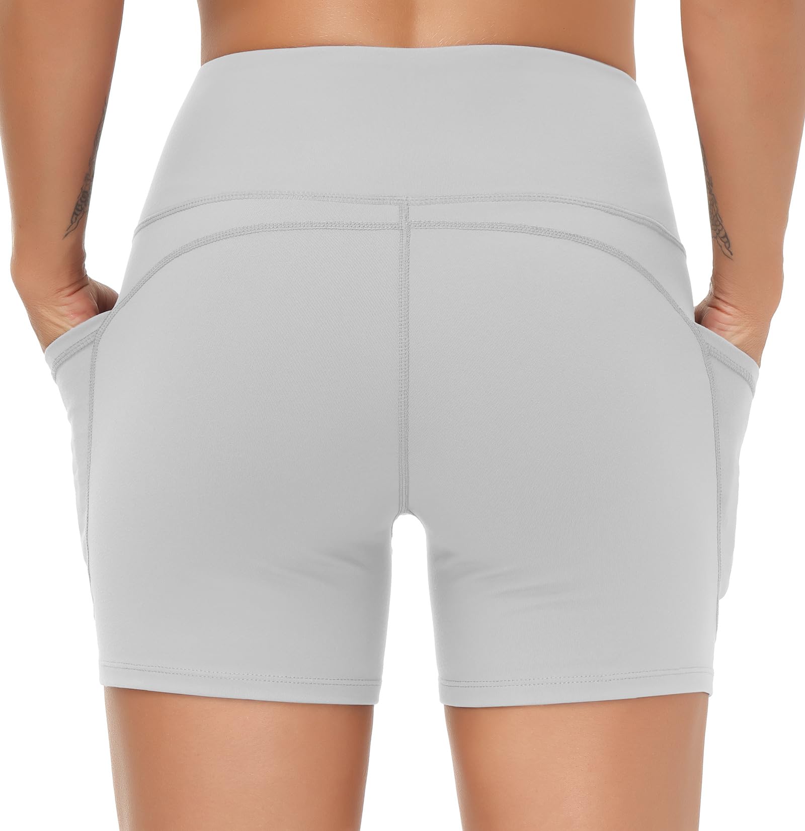[Keep Perfect Shape] - High-waisted style with tummy control design. Wide waistband contours body curves and streamlines shape help to promote yoga shorts both compression and support.