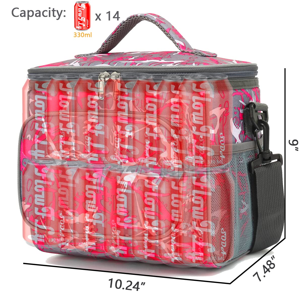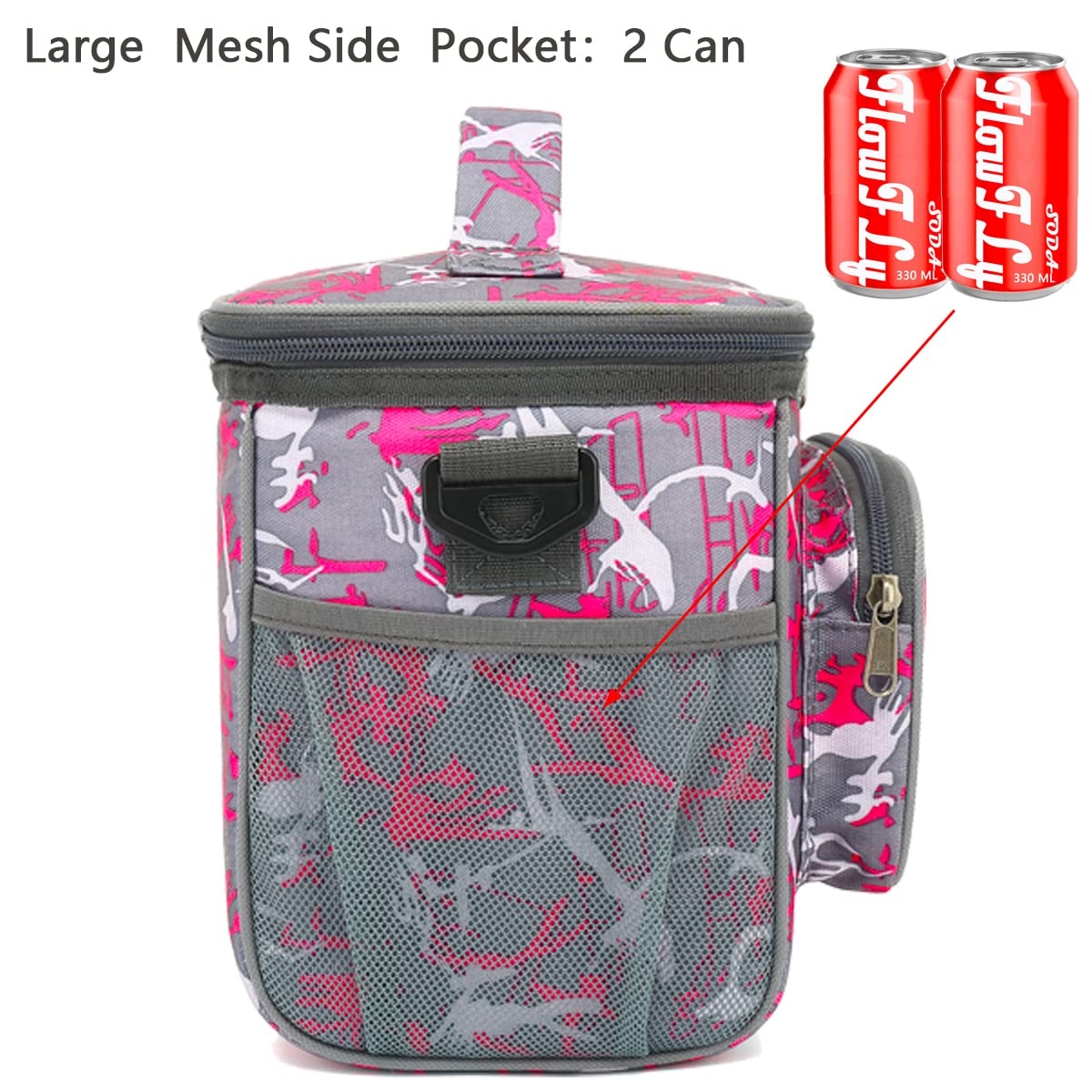 ✿ Large Size:the dimension of the container is:10.24”L×7.48”W×9.06”H,but not too bulky , it could give roomy storage space you need to hold your favotite meals,delies and lunch treats.You could fill the roomy compartments or pockets with lunch boxes, food containers, condiments,fruit salad bowls,utensils,napkins,can opener,wallet,keys and other essentials. Keep your water bottles or energy drinks inside the mesh pocket and quench your thirst of the spot.