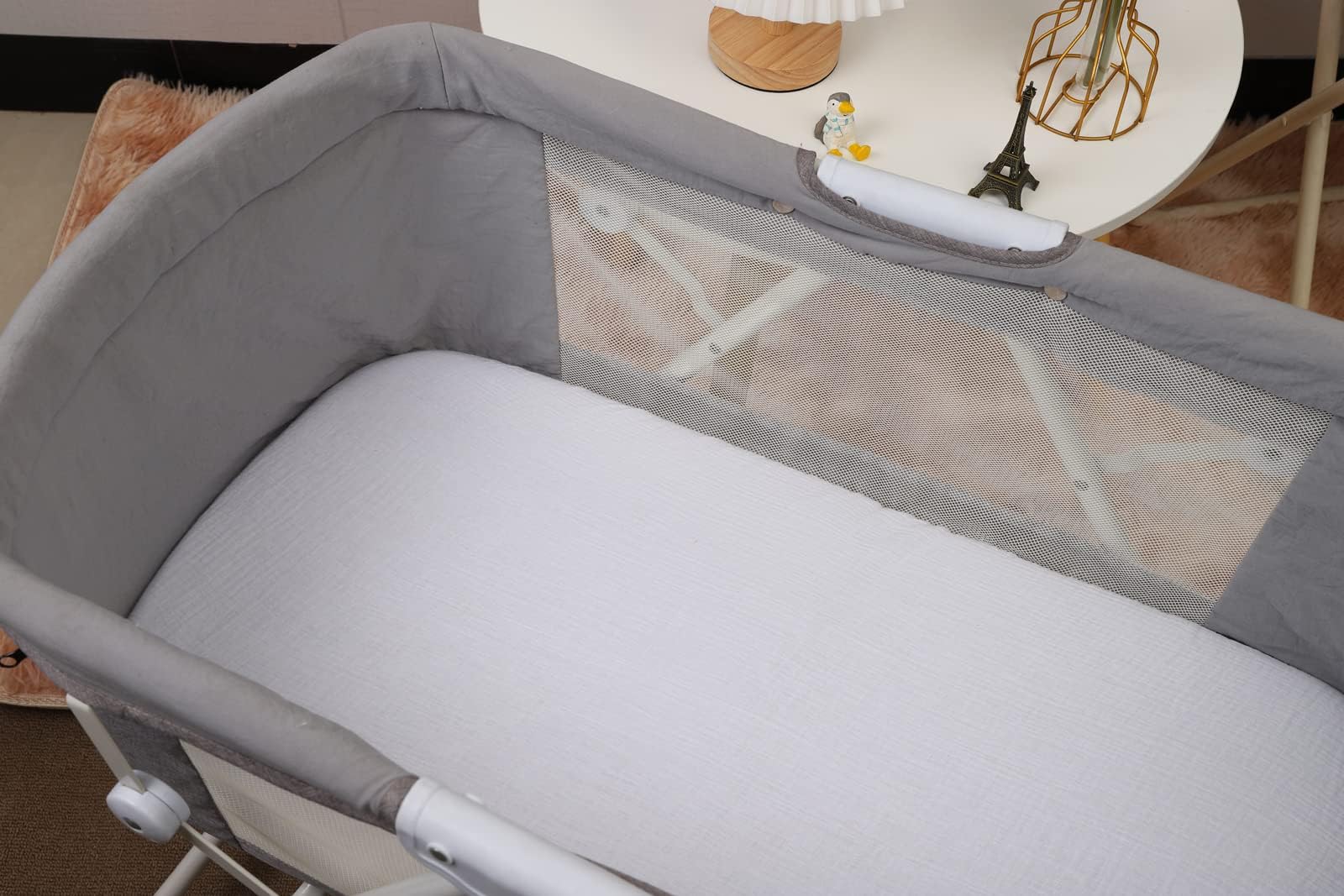 100% Premium Muslin Bassinet Sheets by Onacosht Our muslin bassinet sheets are made of premium 100% cotton muslin, lightweight, breathable and ultra soft. Flexible Size Measures 33"x19"x3", compatible Baby Delight, Mika Micky, Dream On Me, ANGELBLISS, Papablic, Koola, AMKE, Nordmiex, Maxi-COSI Baby Bedside Bassinet, BABY JOY Baby Bedside Crib, RONBEI Bedside Sleeper. Perfect for sensitive skin Muslin cotton is ideal for newborn babies. The open weave allows for airflow to regulate temperature while the soft, lightweight feel is gentle on sensitive skin. Our muslin bassinet sheets provide a cozy layer of natural comfort between baby and mattress, and tightly-woven construction provides super quality and safety. Secure, wrinkle-free fit The fully elastic edge and extra deep pockets provide a snug fit on bassinet mattresses. Sheet stays securely in place all night without popping off, sliding or bunching. Sweet prints for boys and girls Simple and sweet prints for boys and girls, which coordinate with any nursery style, and match muslin swaddles, blankets and other accessories available. Easy care Machine wash warm and tumble dry low. Avoid bleach. Sheet may shrink up to 5% after first wash. For best results, wash before first use. Multiple washes will soften sheet even more.