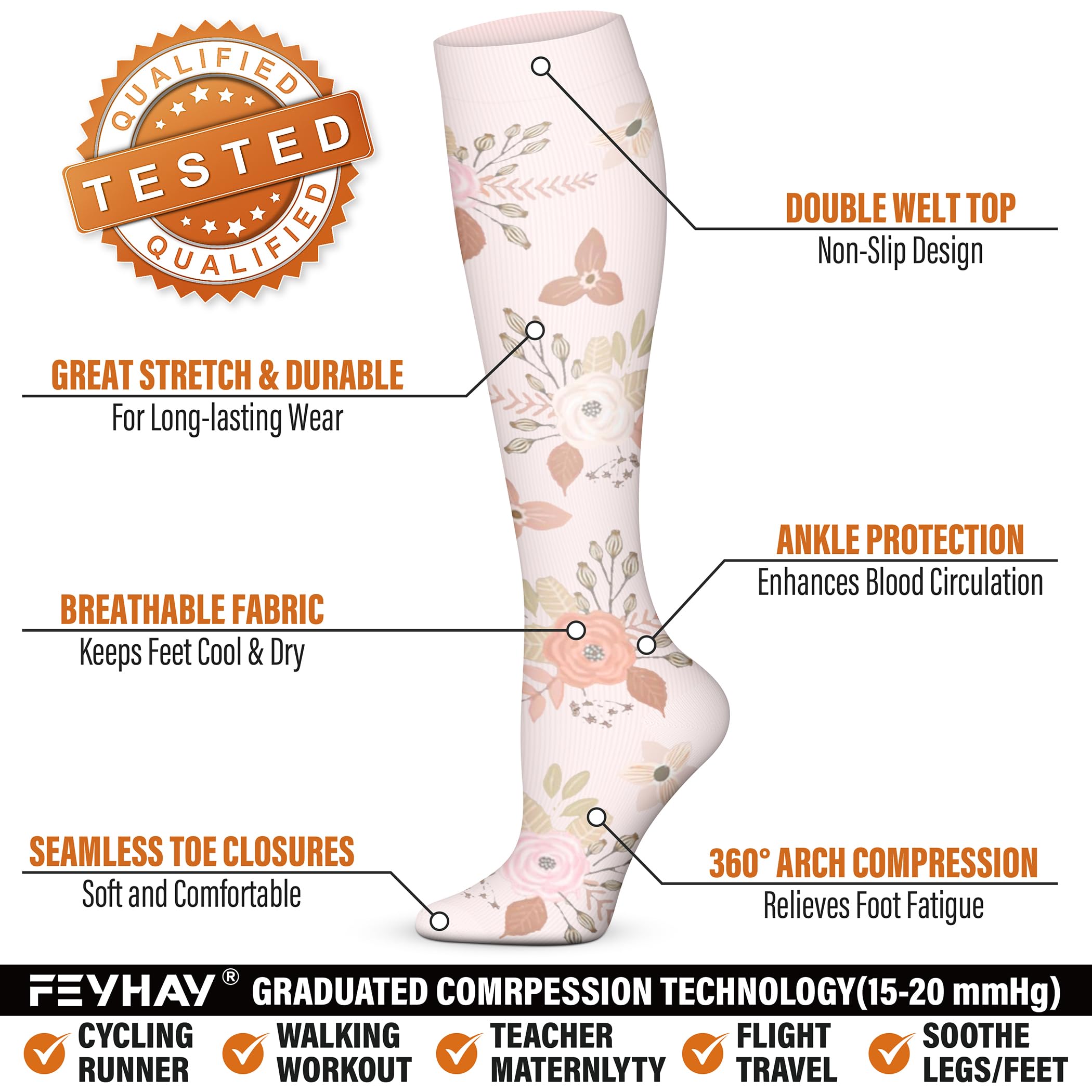 COPPER FIBERS - Copper is a great conductor of electricity, we extended its natural property to rejuvenate blood circulation in your legs through copper fibers capable reviving blood circulation along with providing a 15-20 mmHg compression. Socks are designed according to the structure of the legs and soles of the feet, and have a good effect of relieving fatigue of legs. It offers the most perfect settlement scheme for those who sit for long period during travel or at work.