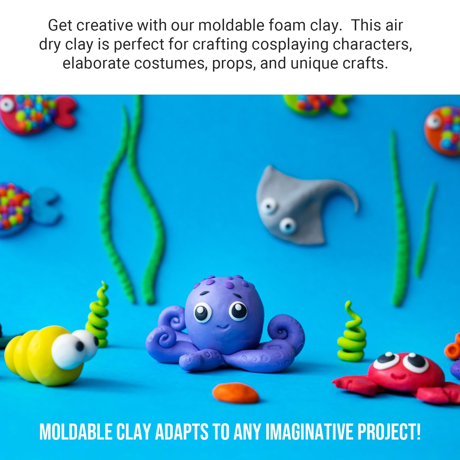DESIGN FOR COSPLAYING CHARACTERS, COSTUMES, AND CRAFTS: Get creative with our moldable foam clay. This air dry clay is perfect for crafting cosplaying characters, elaborate costumes, props, and unique crafts. This moldable clay adapts to any imaginative project!