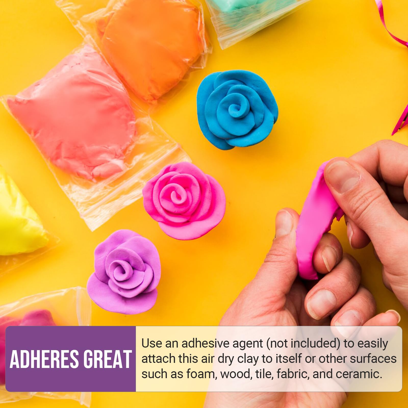 ADHERES GREAT: Use an adhesive agent (not included) to easily attach this air dry clay to itself or other surfaces such as foam, wood, tile, fabric, and ceramic. A little contact cement or super glue is all you need to ensure your air dry foam clay creations stay intact, making it perfect for art projects and professional-quality crafts.
