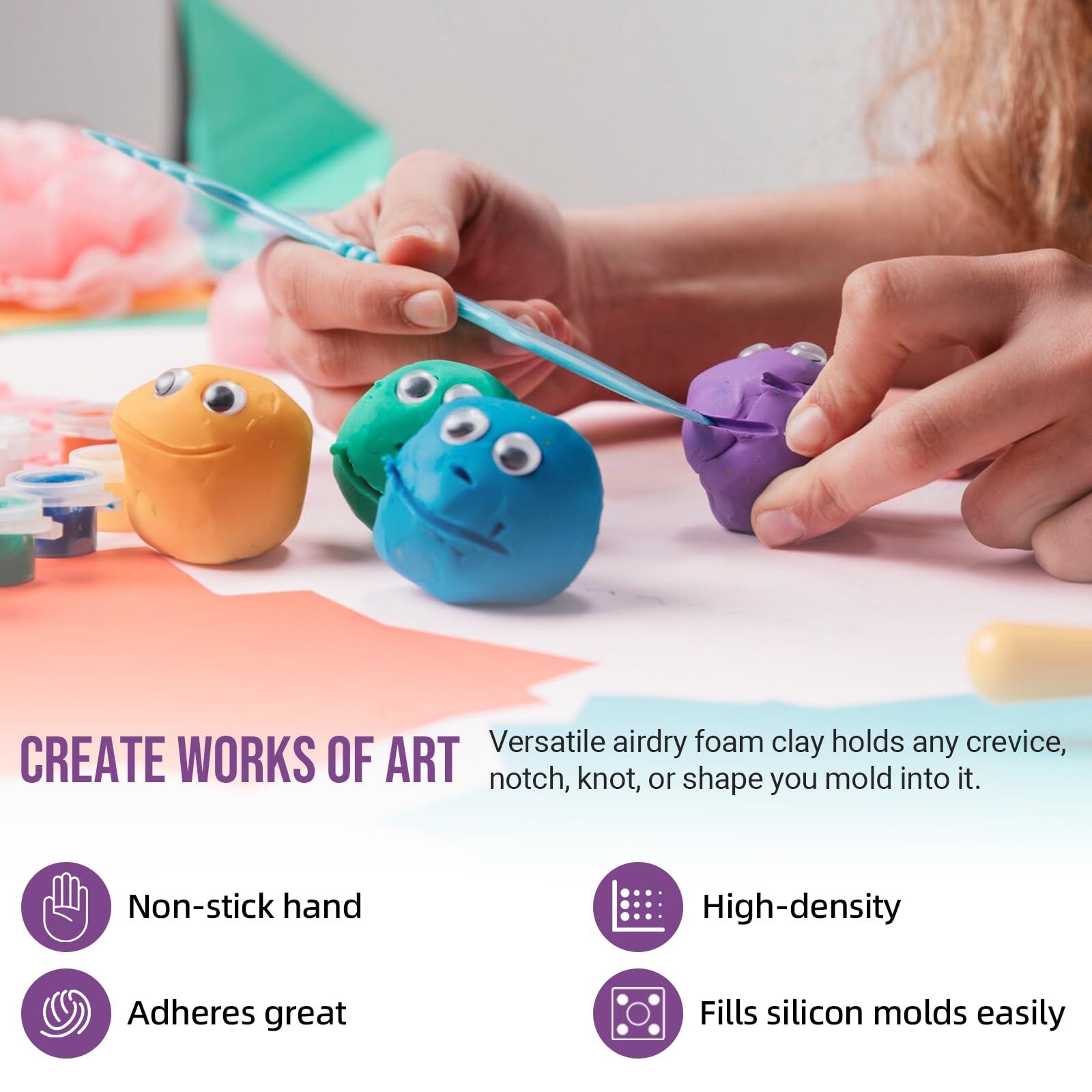 CREATE WORKS OF ART: Shape and mold this high-density air dry clay into any design your mind can envision! This versatile airdry foam clay holds any crevice, notch, knot, or shape you mold into it. When you're working with our soft moldable foam clay, your creations will fill silicon molds effortlessly!