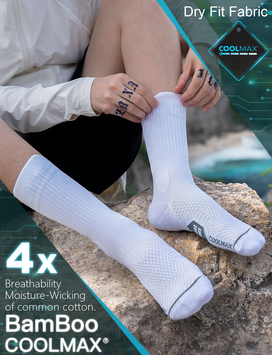 [Moisture-Wicking & Organic Bamboo Viscose Blend] – Keep your feet dry and fresh with our running socks! The COOLMAX fabric quickly wicks away sweat, while organic bamboo viscose helps minimize odors and keeps your socks feeling clean. Enjoy superior comfort and freshness with this innovative sock technology!