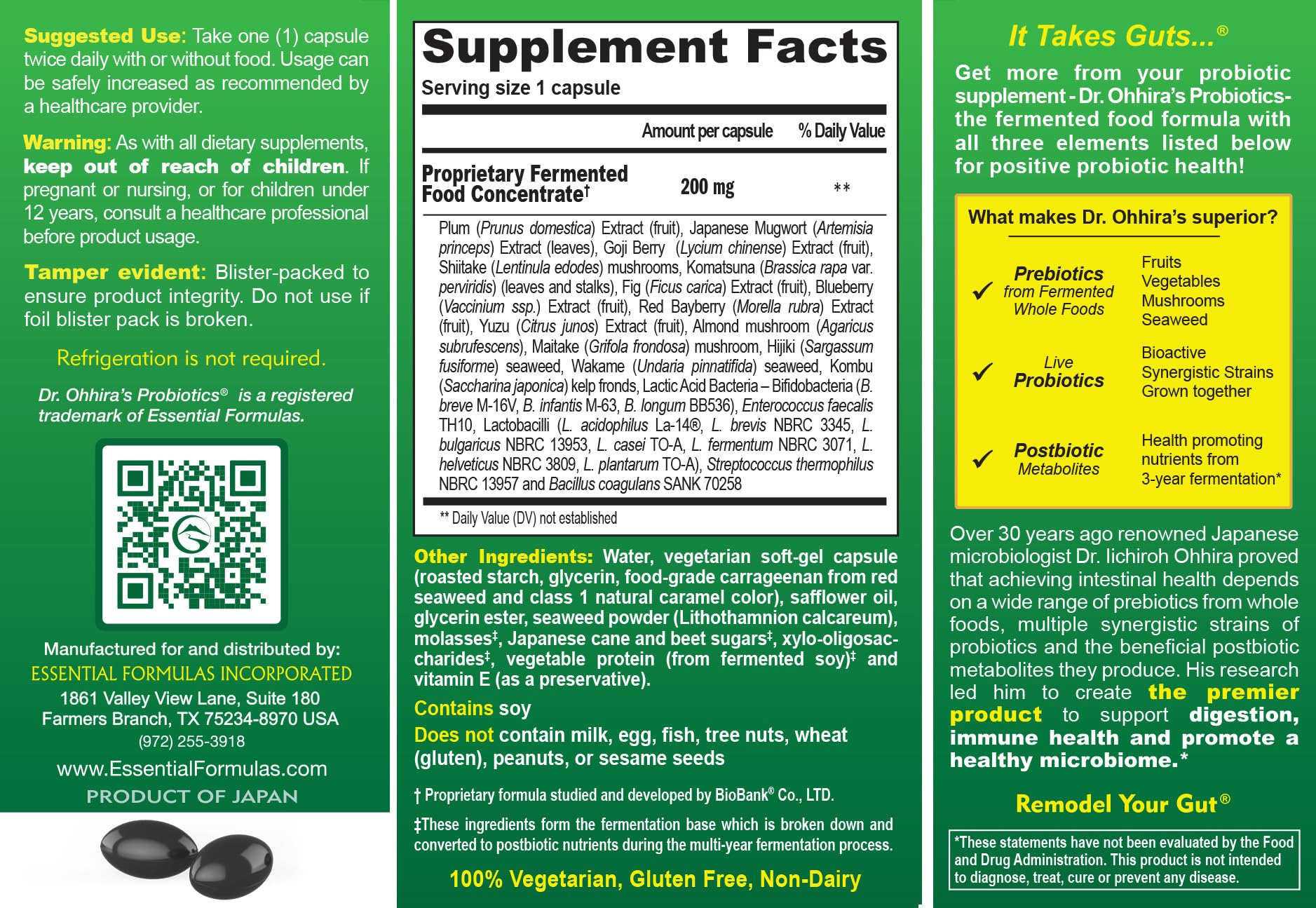 PREBIOTICS AND POSTBIOTICS: We all know the benefits of Probiotics, but Dr Ohhira took it two steps further by also including PREbiotics and POSTbiotics in his formulation. Discover the Dr. Ohhira Difference today.