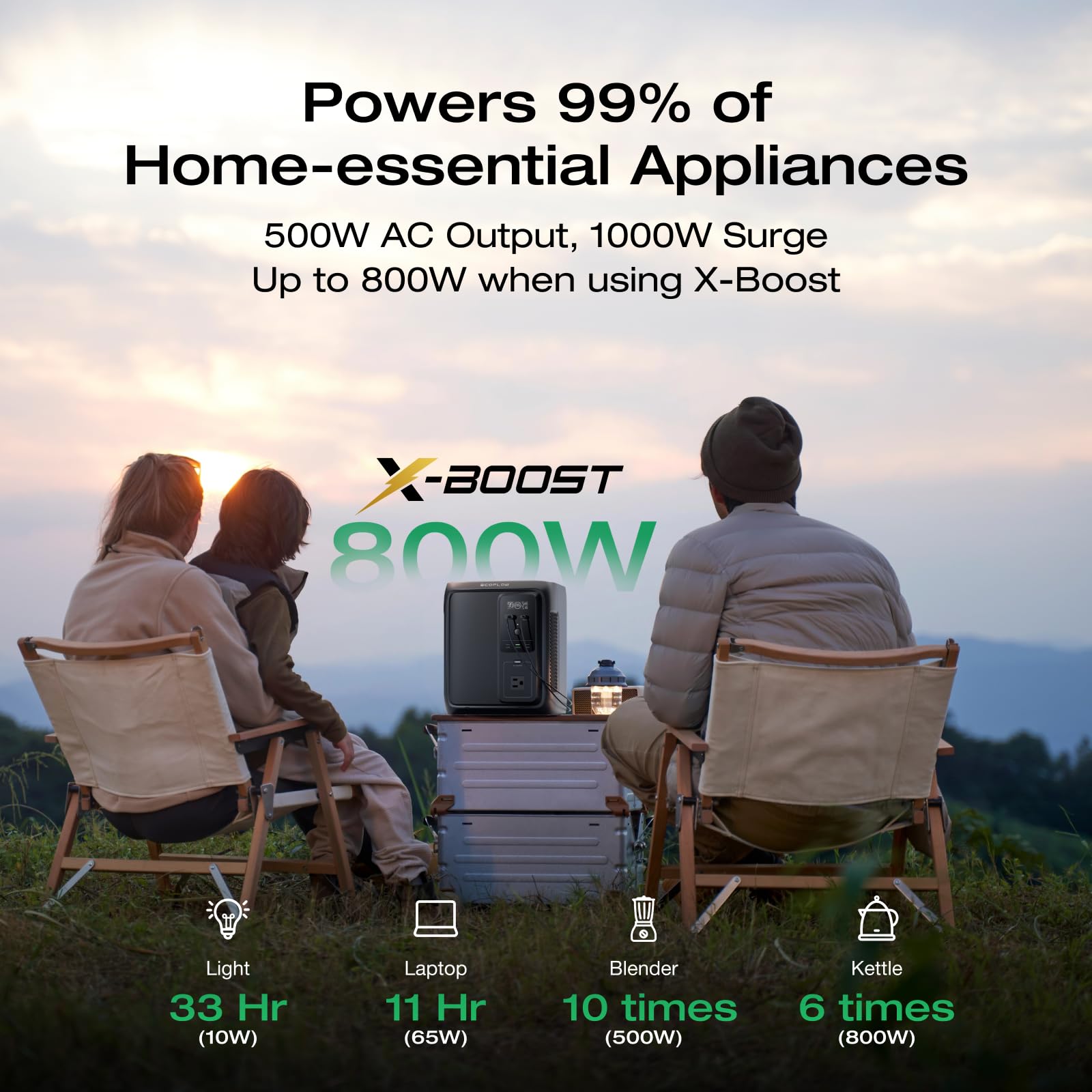 Powers 99% of Home-Essential Appliances: DELTA 3 1000 Air delivers reliable power for nearly everything your family needs—from fans and lights to TVs and refrigerators. And with X-Boost mode, it can handle higher-wattage appliances too, so even cooking with a rice cooker is worry-free.