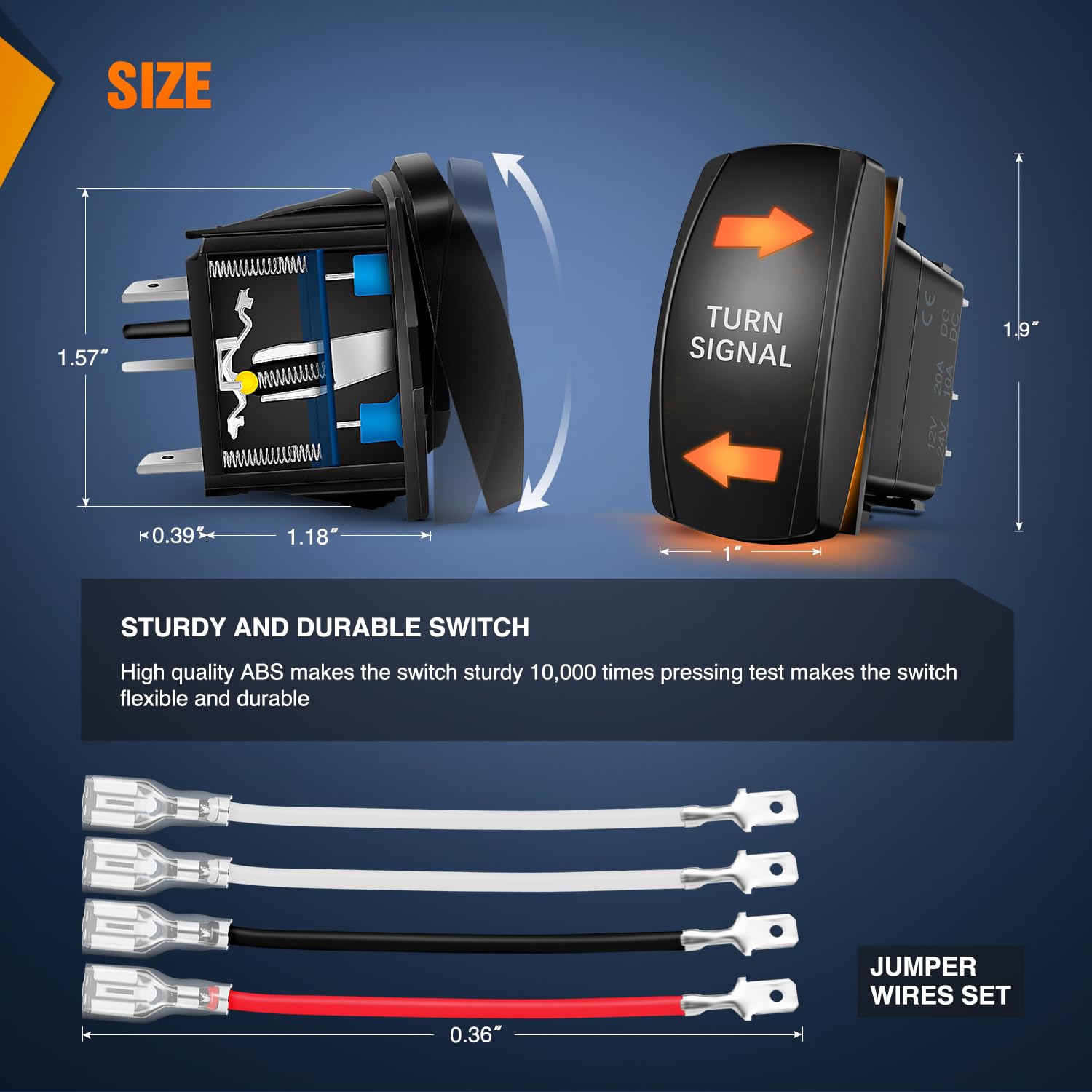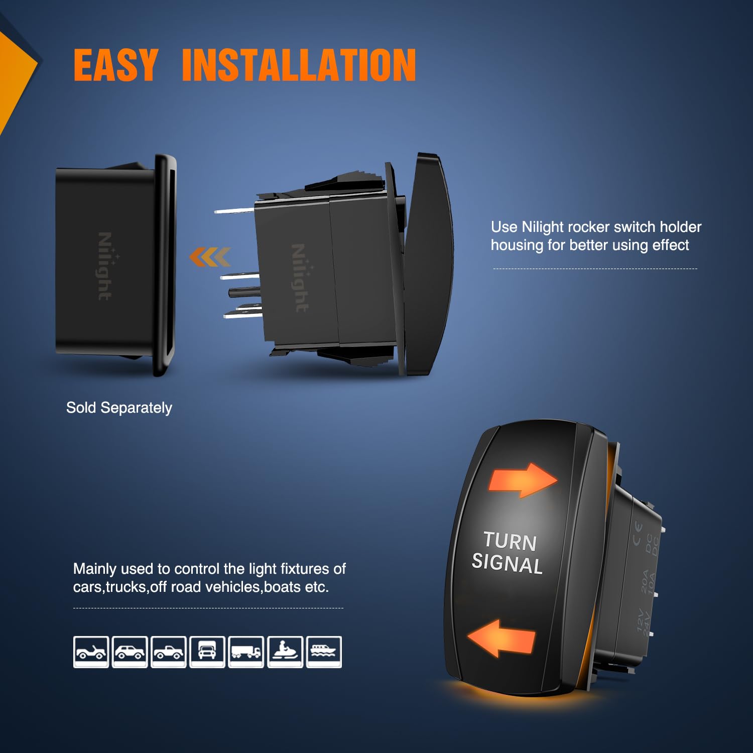 Easy Installation: This 4 Pin rocker switch fits Nilight rocker switch panels and switch holders, it’s the same size with other 5 Pin and 7 Pin rocker switches. Suitable for installing on any 12/24V DC cars, trucks, RVs, Trailers, Campers etc to control the signal lights.