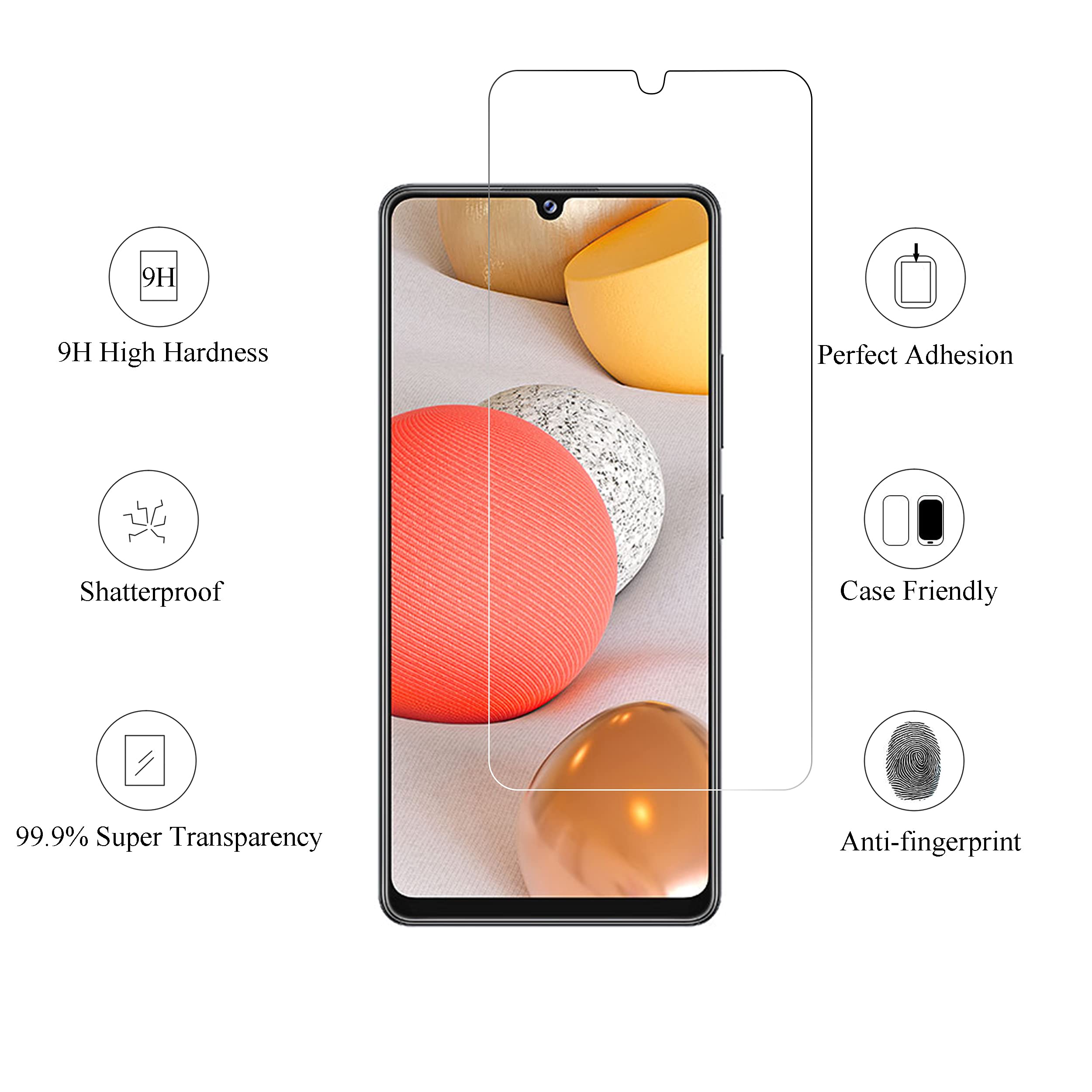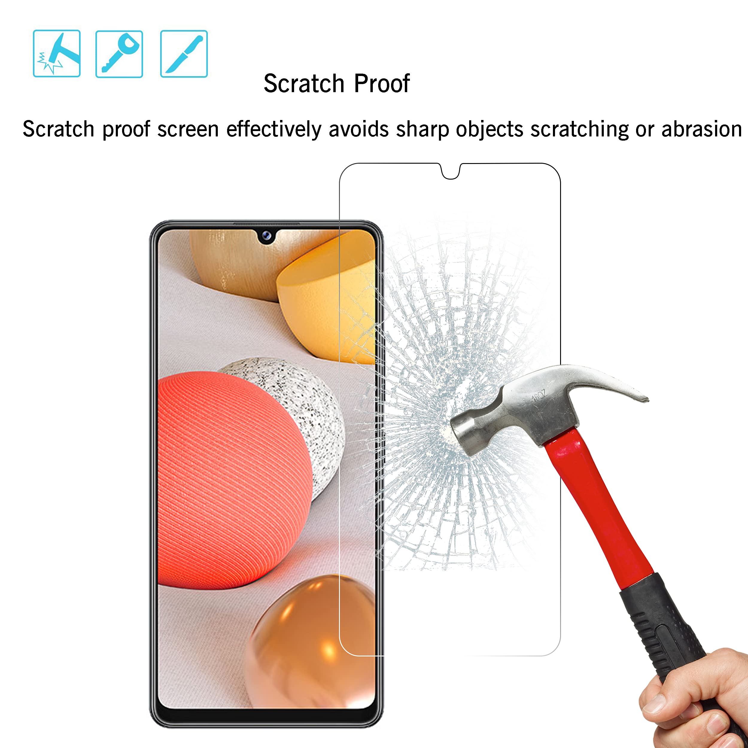 Works For Galaxy A42 5G tempered glass screen protector and camera lens protector.Featuring maximum protection from scratches, scrapes, and bumps.
