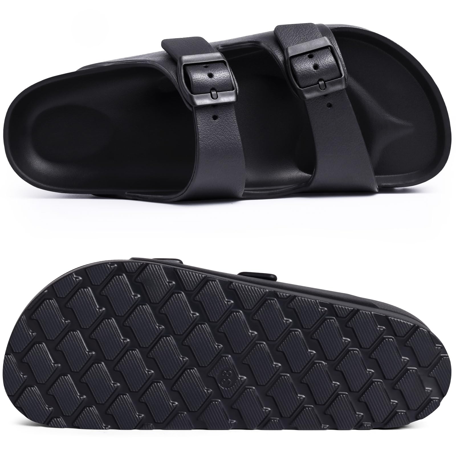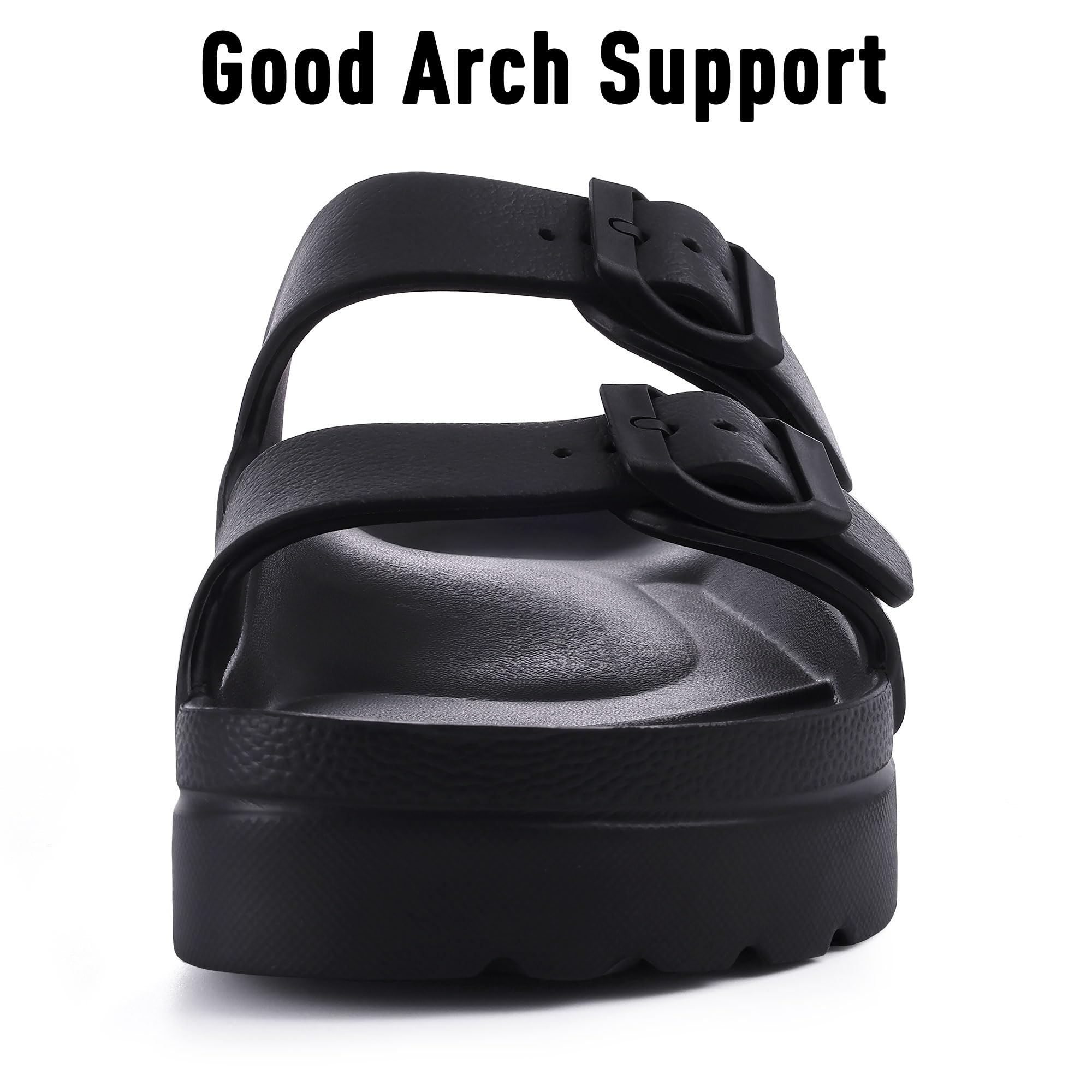 【Arch Support Slides】Featuring pronounced arch support and deep heel cup, footbed molds, and shapes to your foot, you can expect quick and snug fitting that ensures max comfort even after long time use.