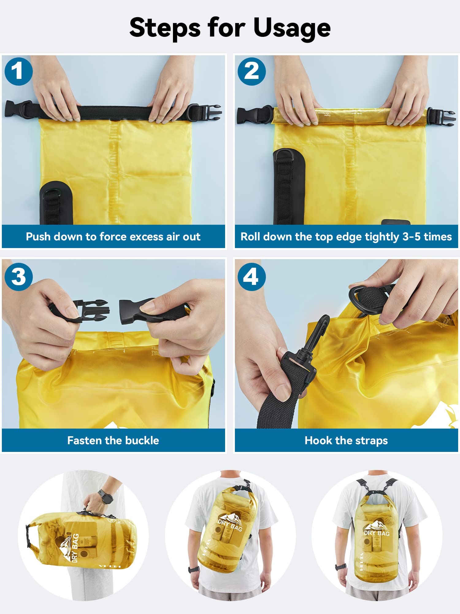 Durable - Made with wear-resistant PVC material: 0.6 mm thick at the bottom and 0.3 mm on the sides, this waterproof bag is easy to wipe clean and suitable for all kinds of weather and environment. Comfortable to carry during long outdoor activities