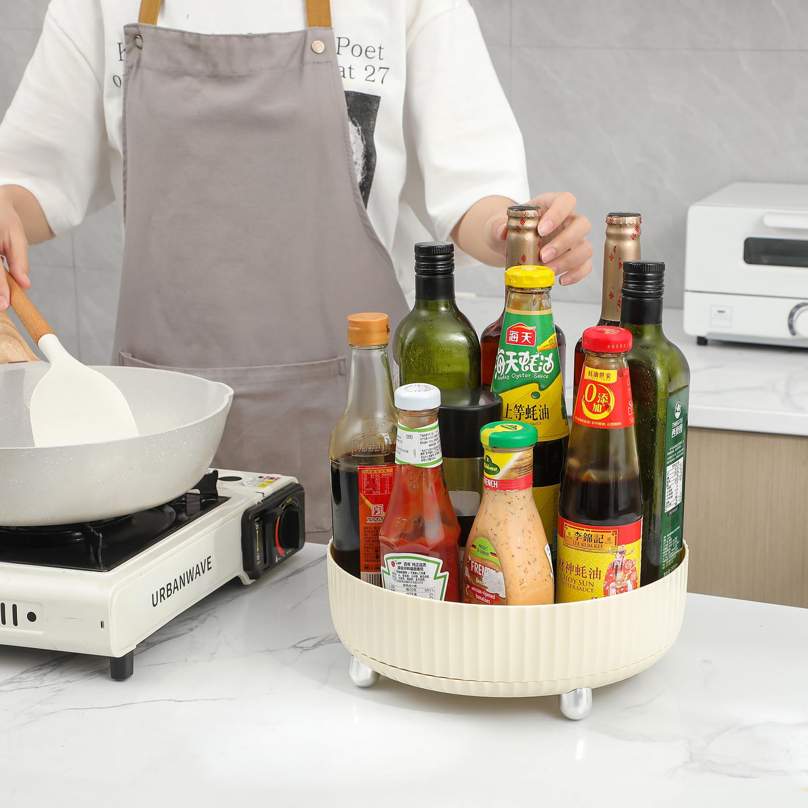 PREMIUM MATERIAL: Without installation and using ABS material, it is sturdy for long term use. The surface is smooth and easy to clean. There are four non-slip sturdy feet that help to improve stability, easy to spin.
