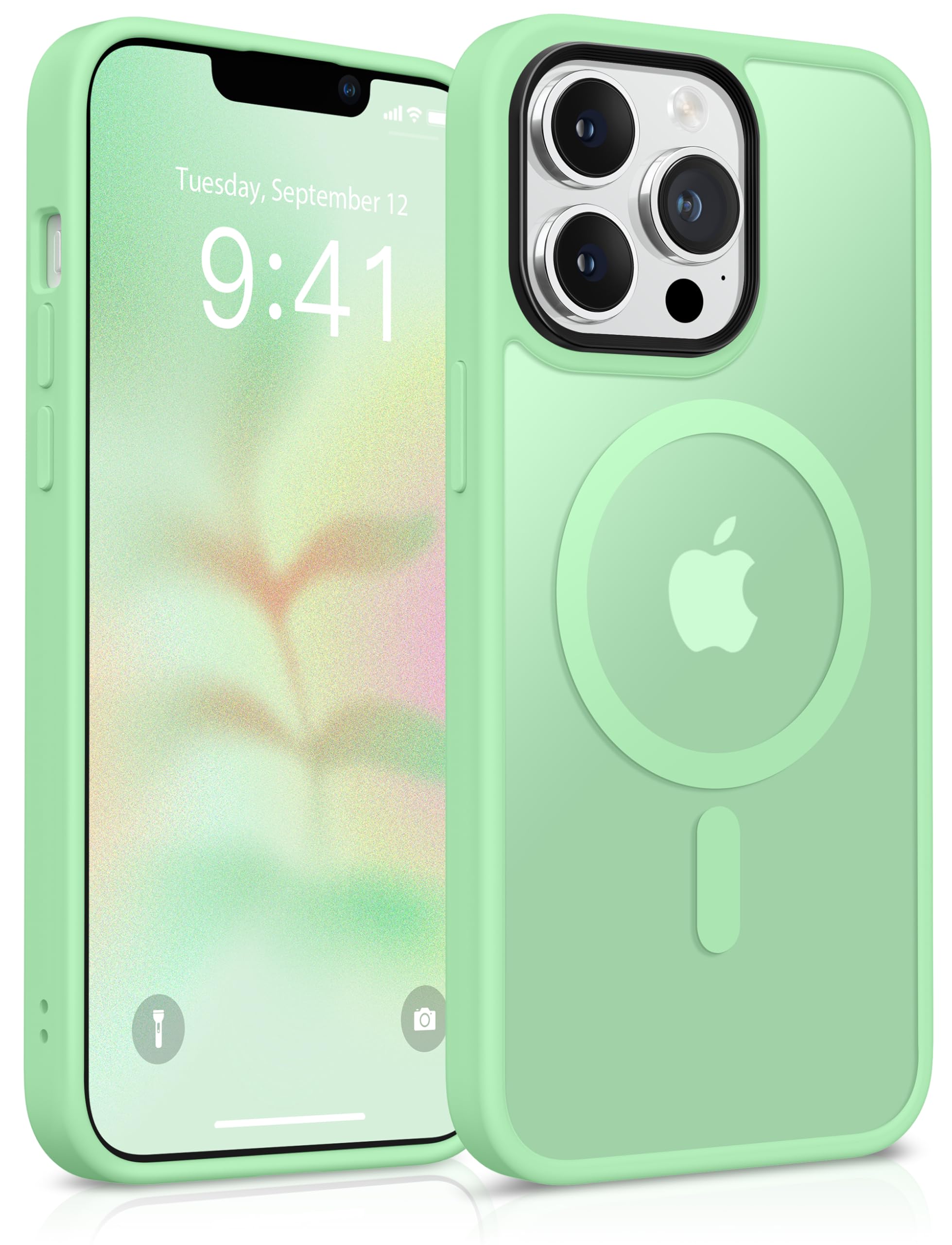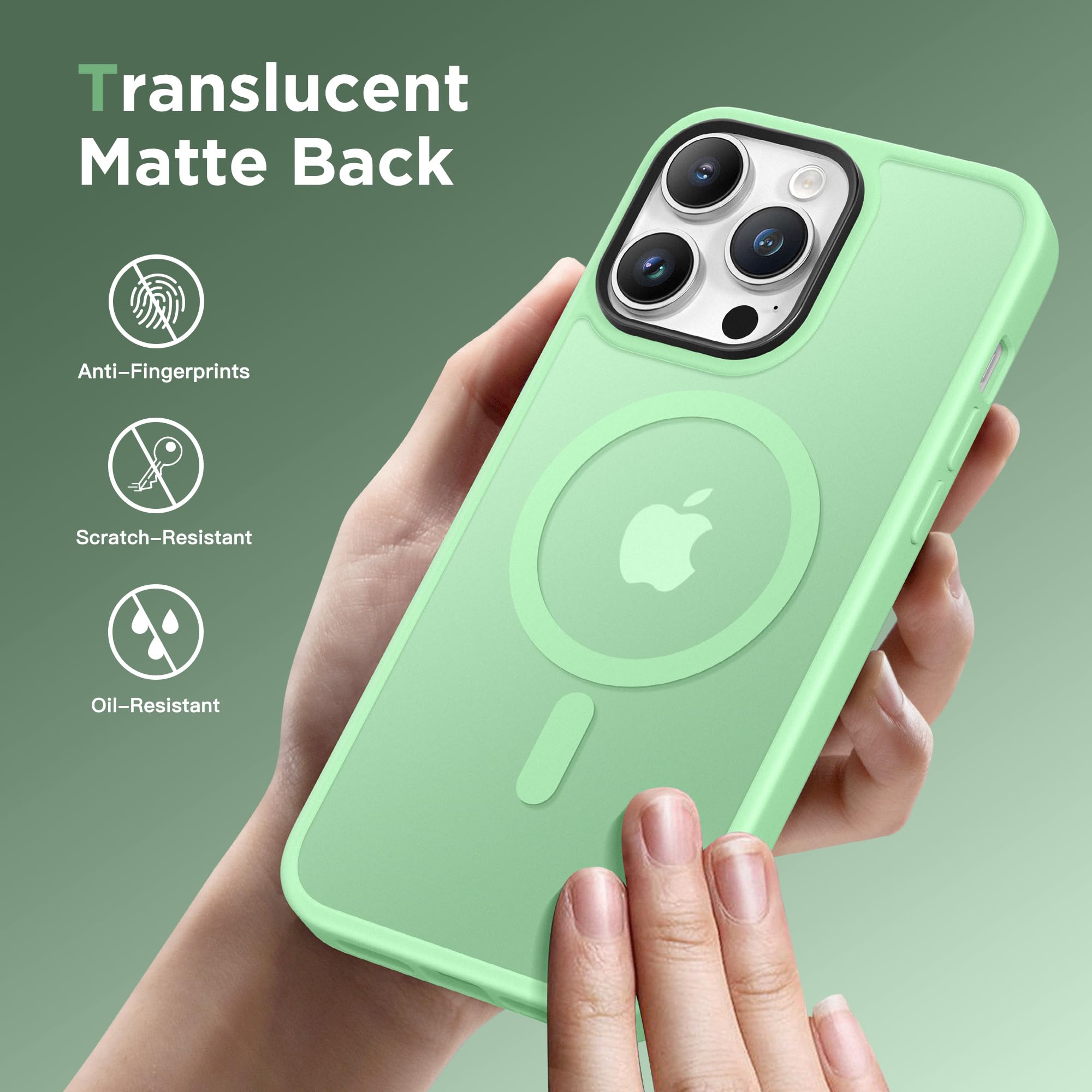 GONEZ Magnetic for iPhone 13 Pro Max Case,Compatible with MagSafe,[Military-Grade Drop Protection][Anti-Fingerprint] Slim Translucent Matte Back Shockproof Phone Protective Case(Bamboo Green)