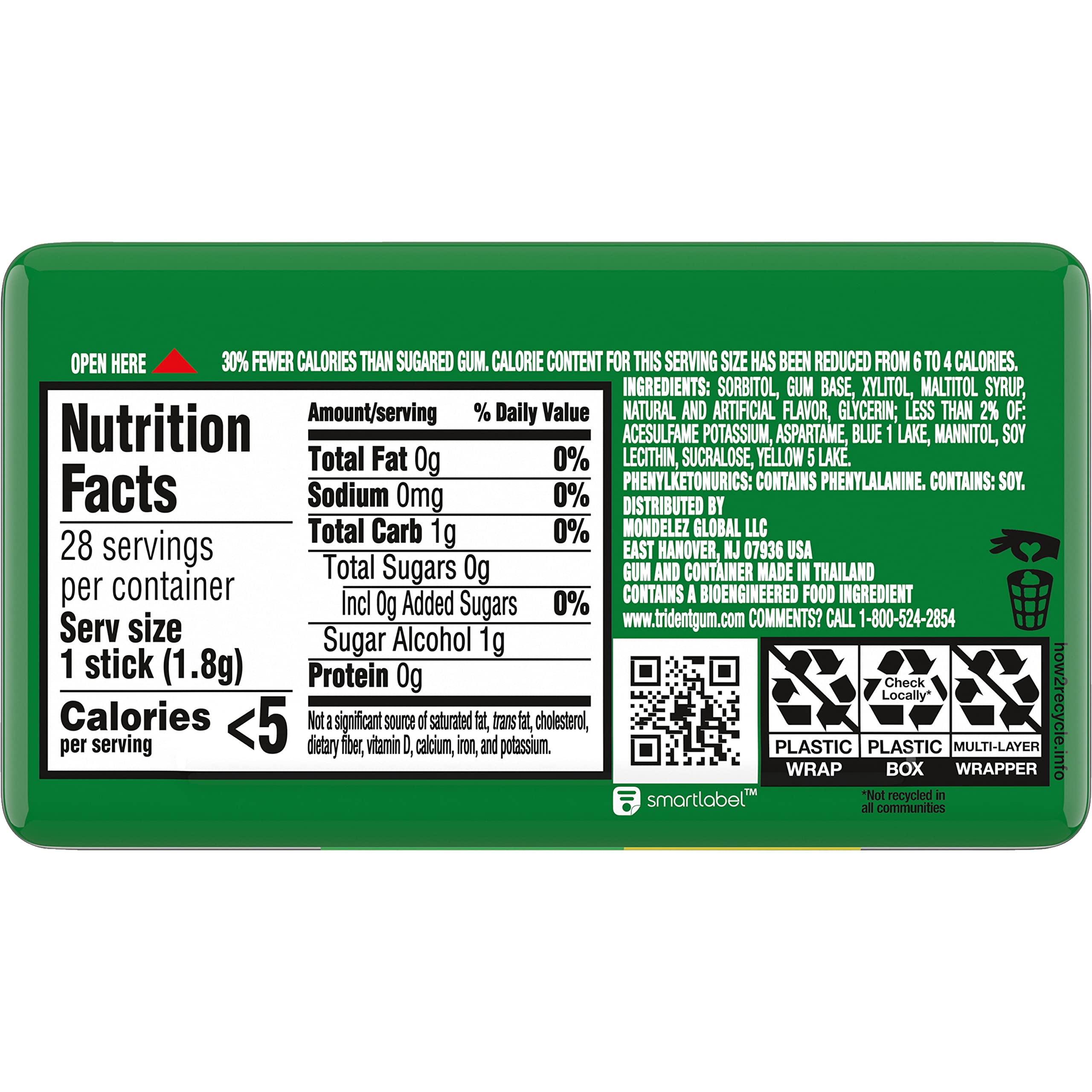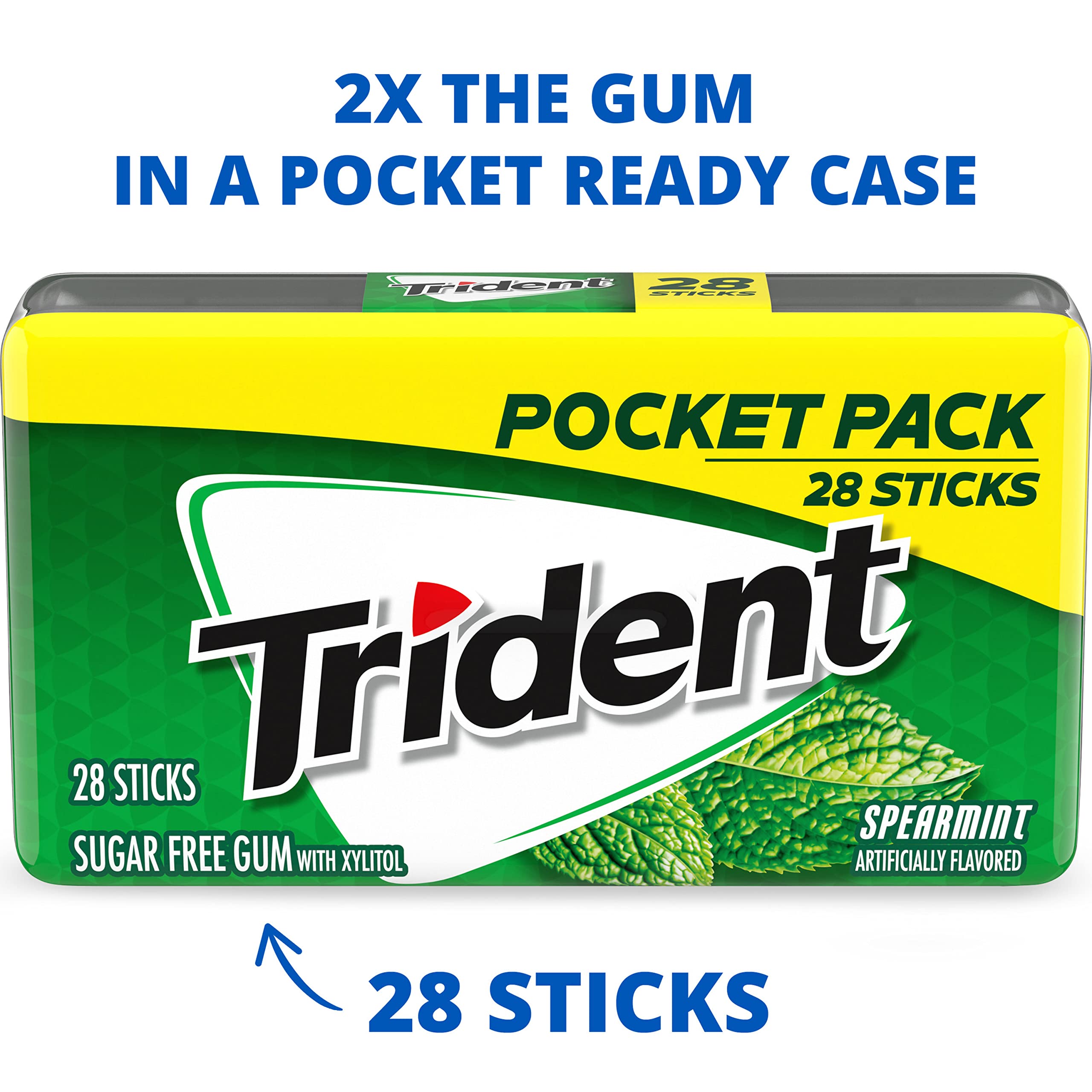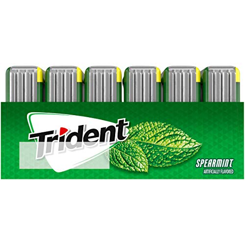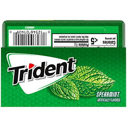 2x the gum in pocket ready hard case! Trident Spearmint Sugar Free Gum is a delicious way to freshen breath and protect your teeth. This gum puts on a green super hero cape and becomes the Cool Crusader of Spearmint Freshness. With 30% fewer calories than sugared gum, Trident spearmint gum is sweetened with xylitol, a naturally occurring sugar alcohol. The ADA Council on Scientific Affairs found that the physical of chewing Trident sugarless gum for 20 minutes after eating stimulates saliva flow which helps to prevent cavities by reducing plaque acids and strengthening teeth. Bulk gum packs provide plenty to stock your home, company or small business, and each individual hard case pocket pack is designed so the gum sticks stays inside, making it easy to toss in your car, backpack or desk drawer. These sticks of mint gum are individually wrapped for freshness.