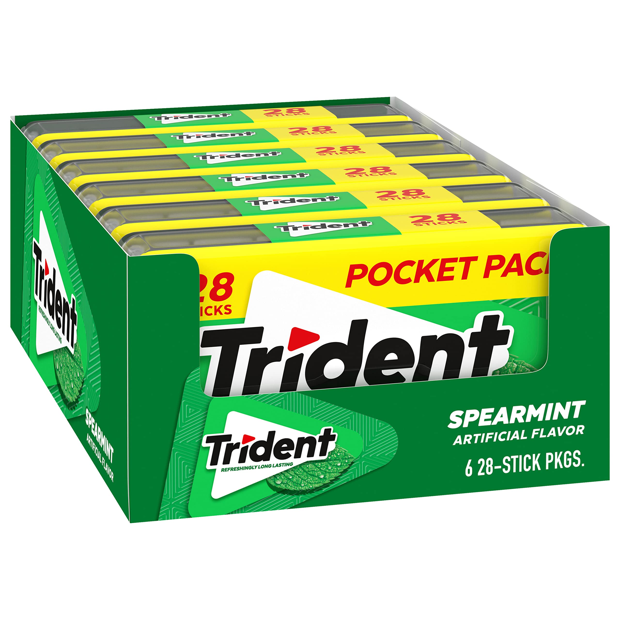 6 Pocket Packs with 28 pieces each, 168 total individually wrapped pieces (double the gum) of Trident Spearmint Sugar Free Gum (packaging may vary)