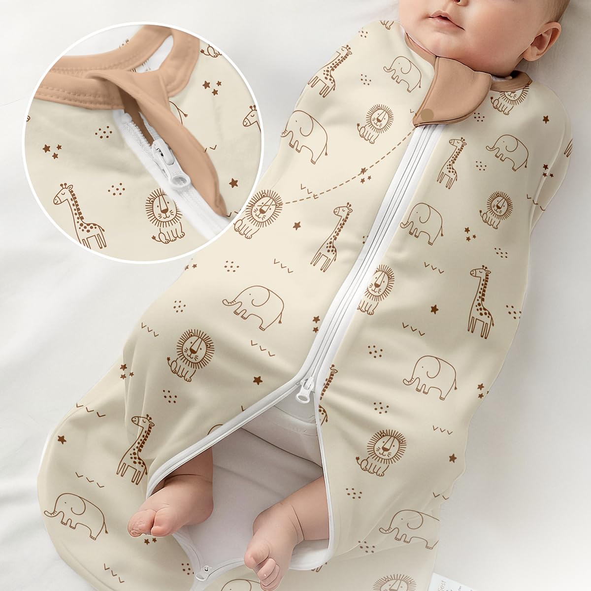 Baby Swaddle 0-2 Months, Cotton Arm-In Zipper Sleep Sack, Wearable Blankets Wrap for Newborn Infant Girls and Boys (Woodland Animal, Star Moon, Pack of 2)