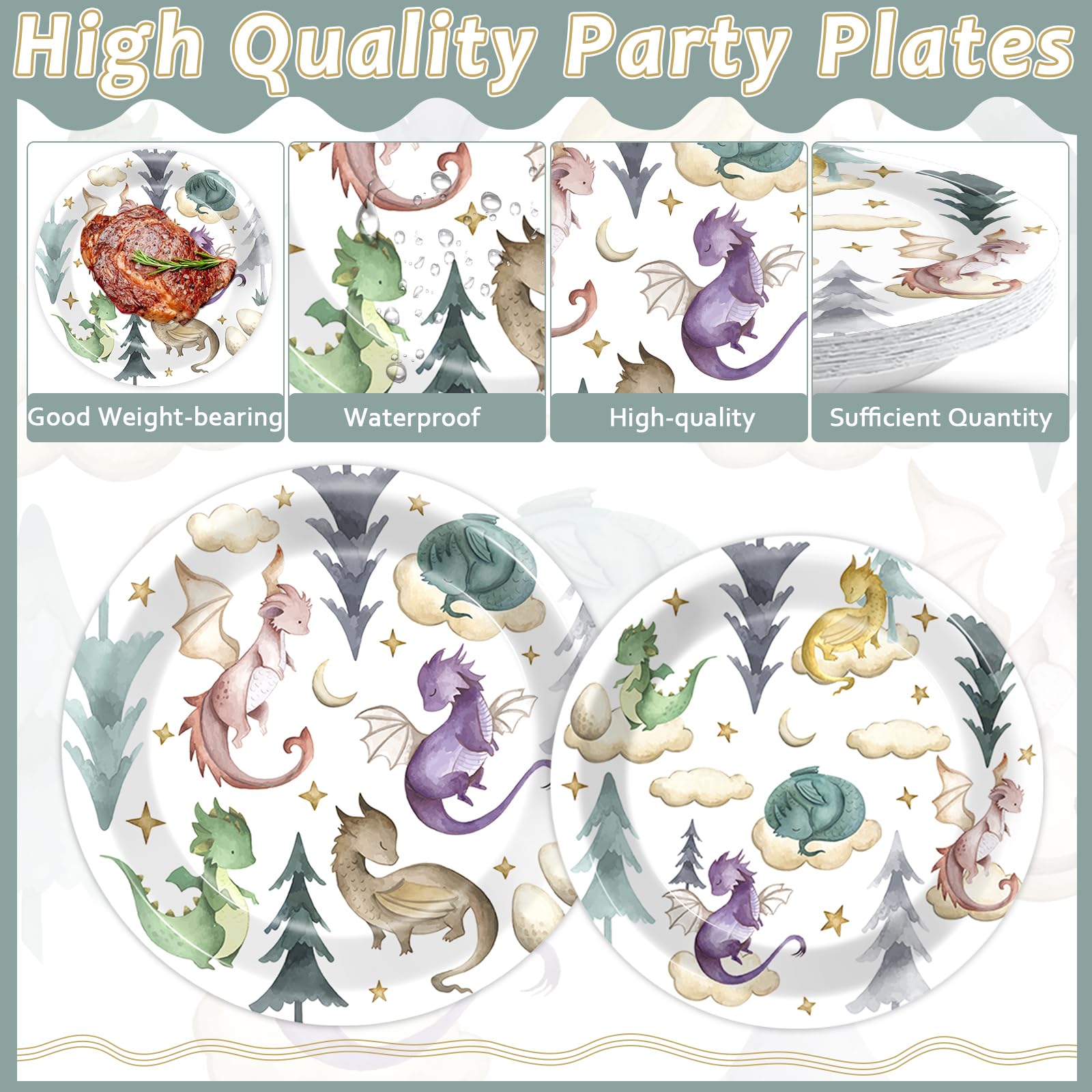 Premium material: our fantasy dragon tableware are made of quality paper, the thickened could withstand normal food weight. The watercolor dragon themed design are well-printed, avoid fading embarrassment.