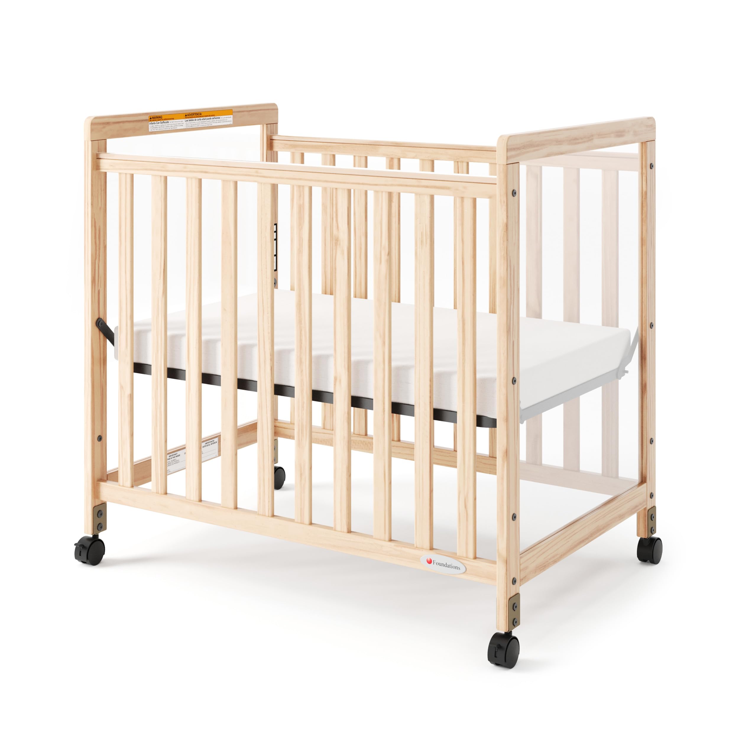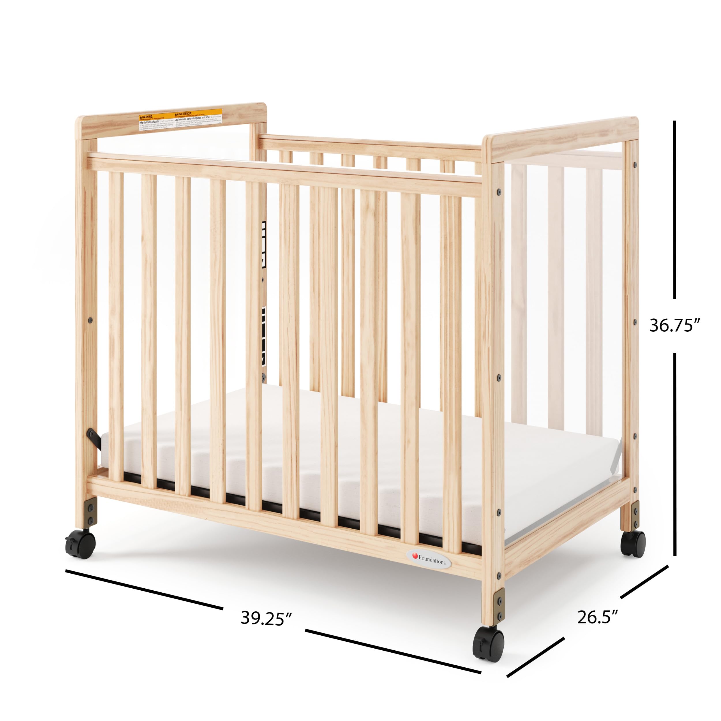 Mattress Included: Each crib includes a 3” ultra-durable InfaPure foam mattress, providing firm support and comfort while ensuring compliance with all safety standards for infant sleep environments.