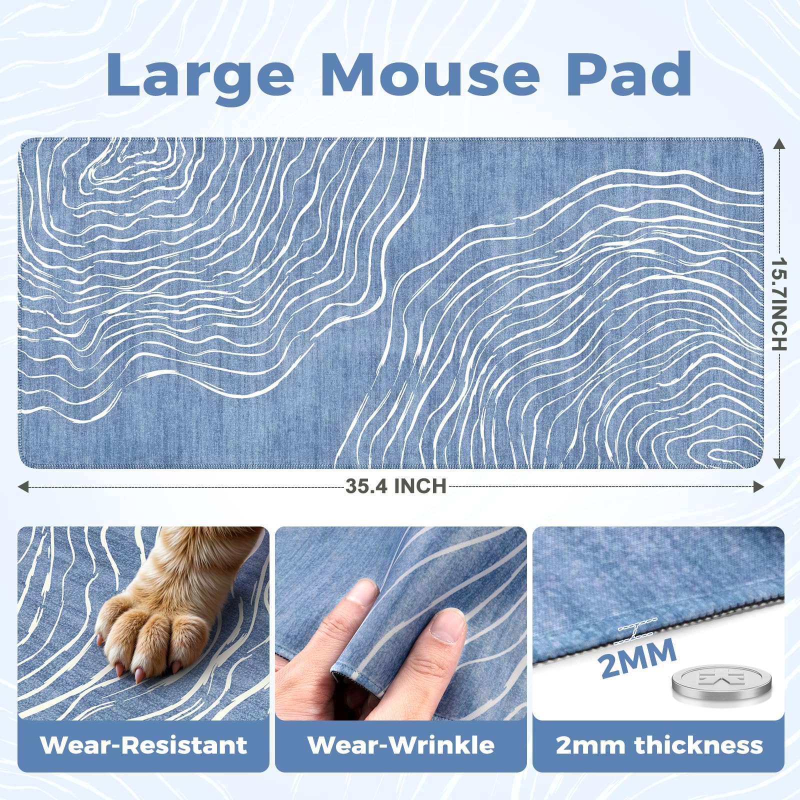 Protect your desktop-The surface of the neoprene mat is made of comfortable Lycra material with stitched edges for wear resistance and durability. As a result, this premium desk cover dorm protects your desktop from scratches, stains, heat and spills