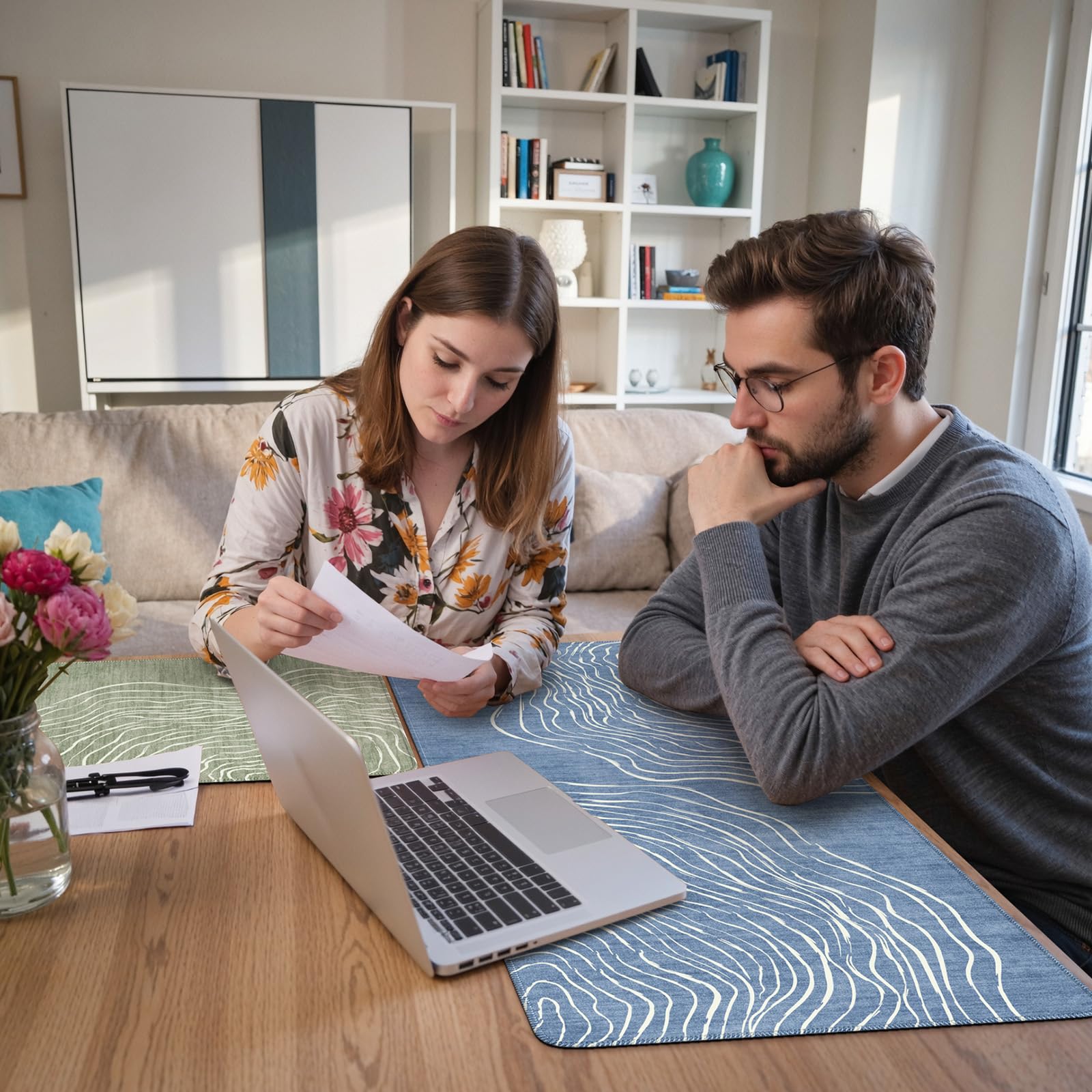 Minimalist Aesthetics-Embodying the core principles of minimalist aesthetics, this office decor elevates your workspace through the art of simplicity and practicality. Designed with a backdrop of soft solid colors with a clean and orderly linear pattern as a visual anchor, the desk cover skirt complements modern furniture, sleek technology, and raw materials such as wood or metal