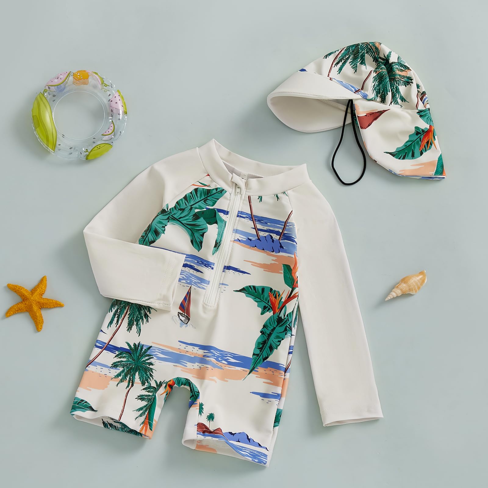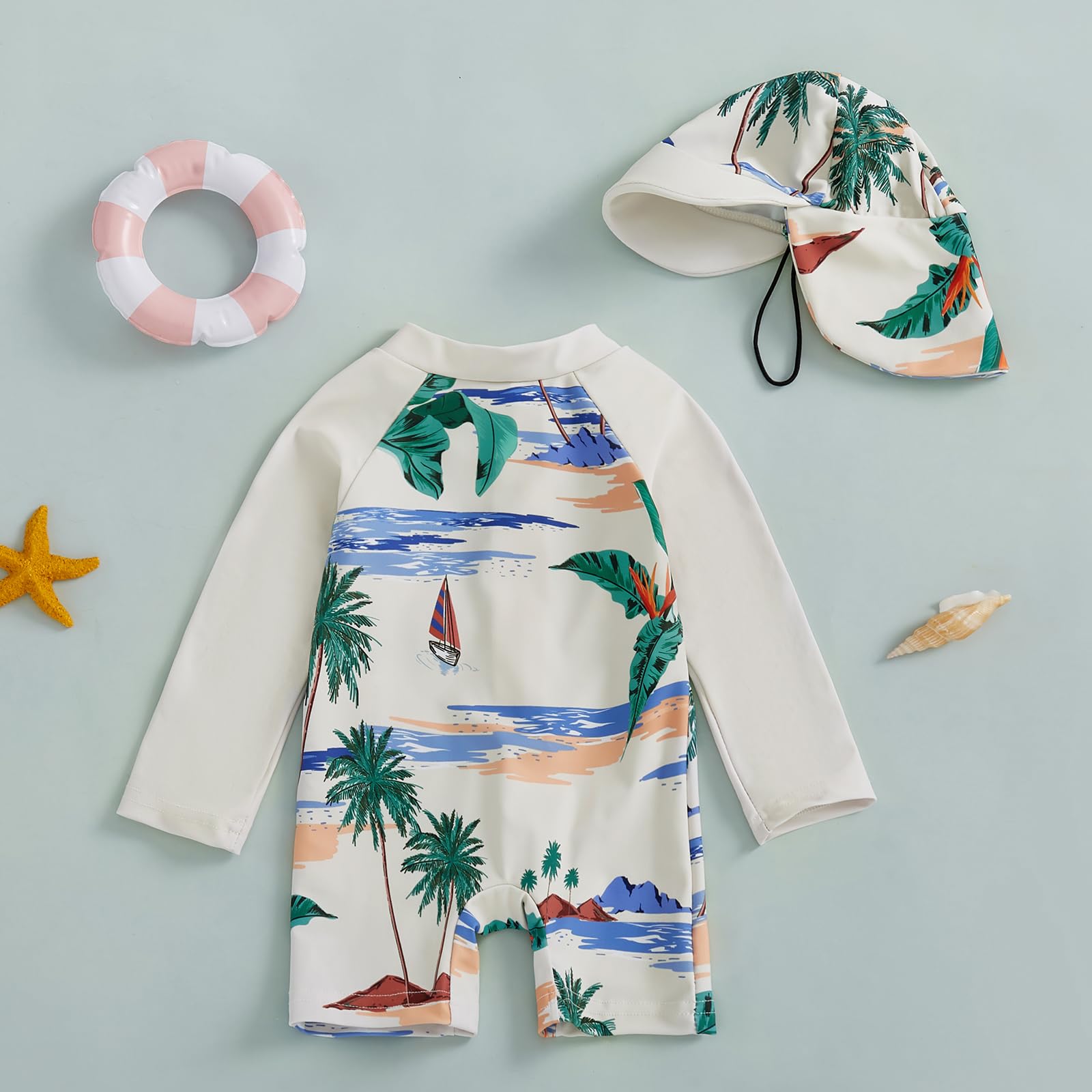 Design: Toddler bathing suit boy, infant long sleeve swimsuit boy, round neck, back/front zipper closure for easy on and off, newborn swimsuit boy, dinosaur/marine animal print, super cute and lovely, your little boy will stand out in the crowd