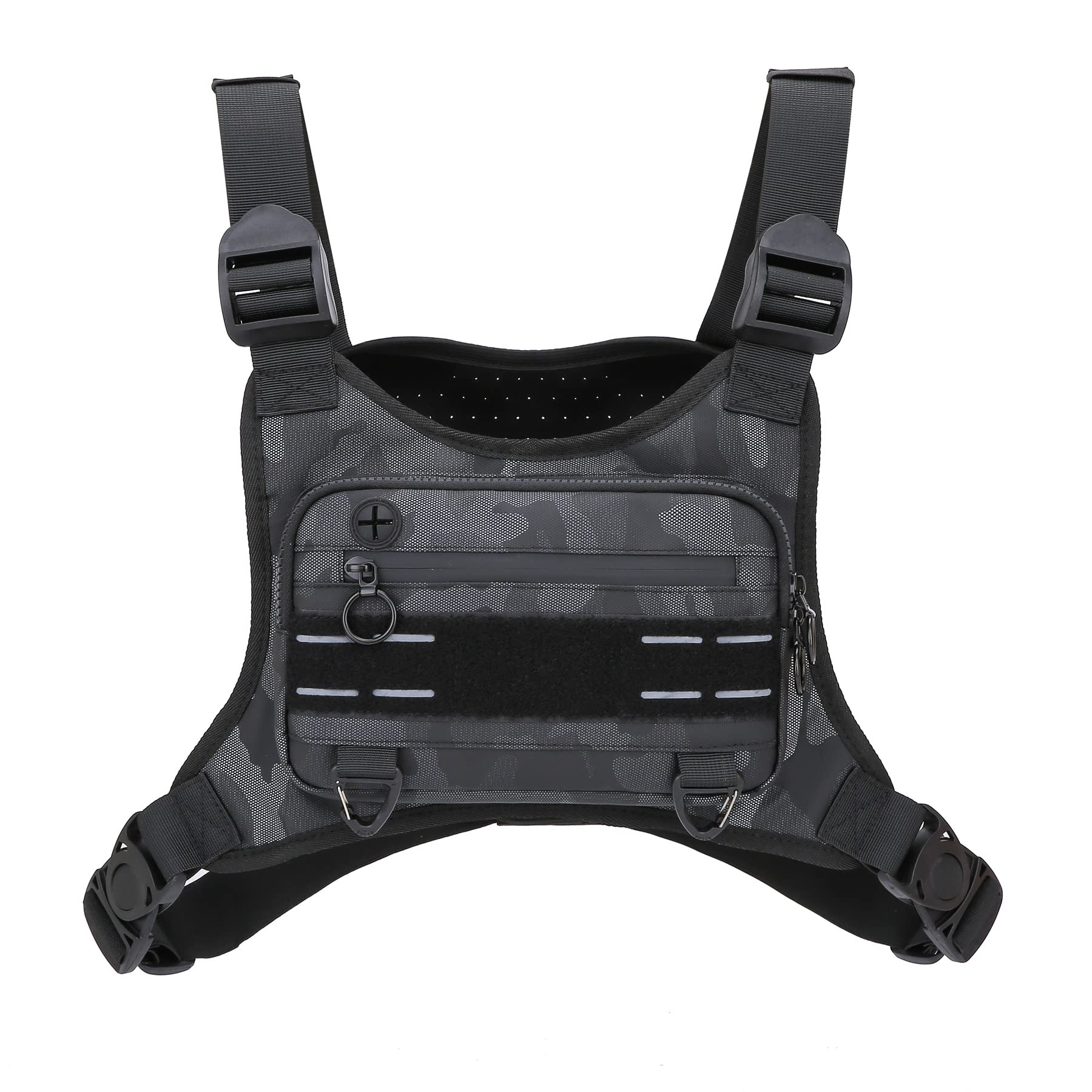 Muserise Sports Chest Bag For Men Women, Water Resistant Lightweight Front Chest Pack, Running Vest Bag With Built-In Phone Holder & Extra Storage For Workouts, Running, Cycling (Camo)