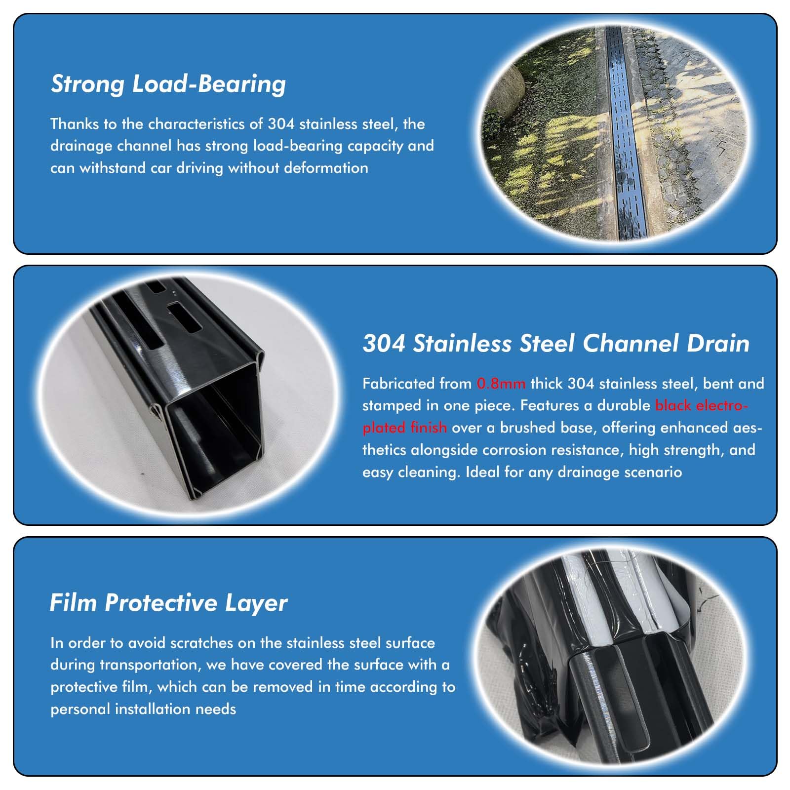 Stainless Steel Deck Drain Kit: Deck drain kit is made of a 0.88 mm Thick 304 stainless steel plate that is punched, punched, and bent. It has strong load-bearing, high durability, long service life, and can efficiently and long-lasting collect water on the ground