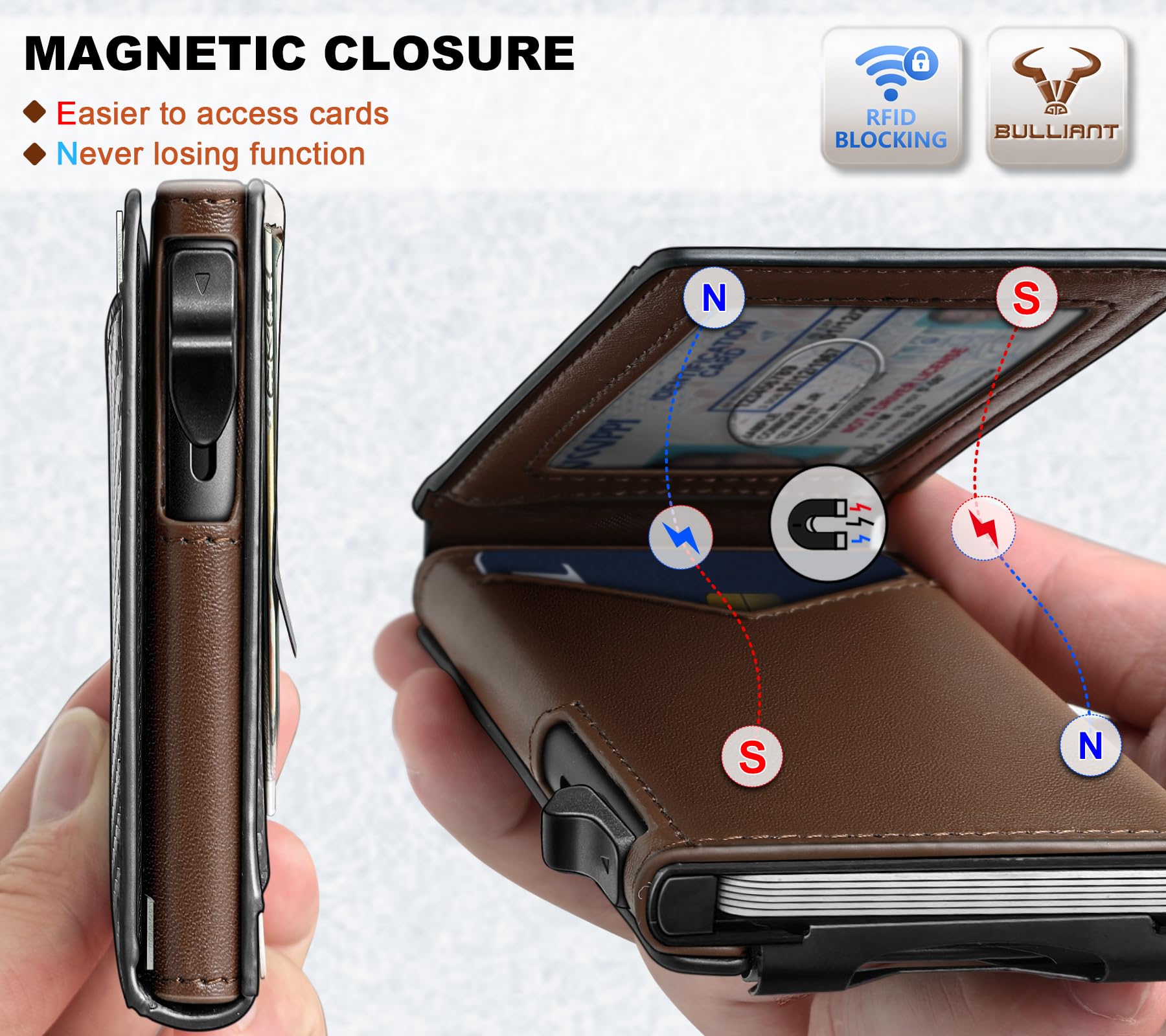 MAGNETIC FLIP--Leather flipping cover with magnetic closure to the metal case,very stable and easy to handle the external cards for daily use;