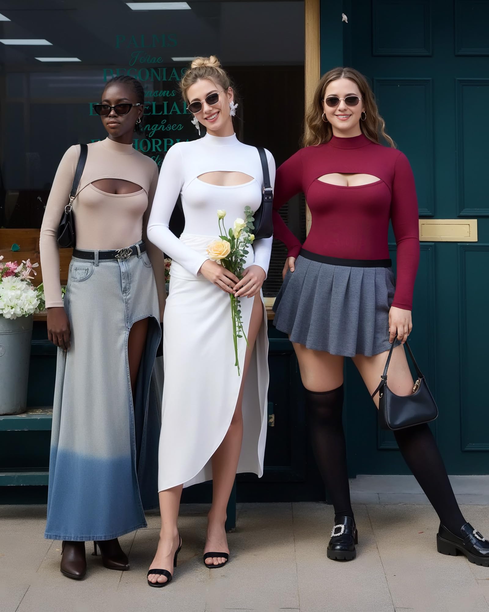 Design: Long sleeve bodysuit boast a stretch-fitted style with a mock neck and cut out detailing, offering a slim fit and exuding a casual yet elegant fashion vibe