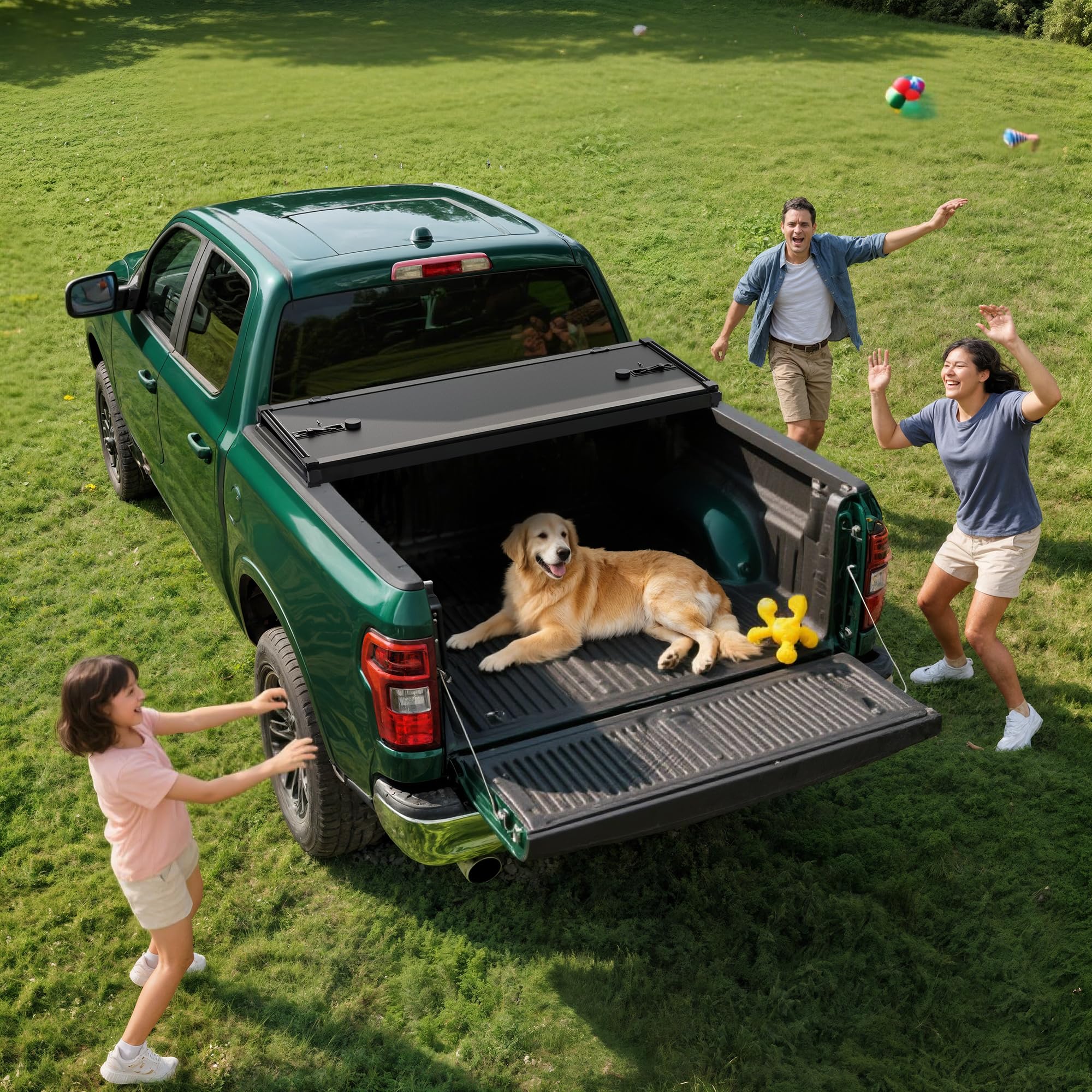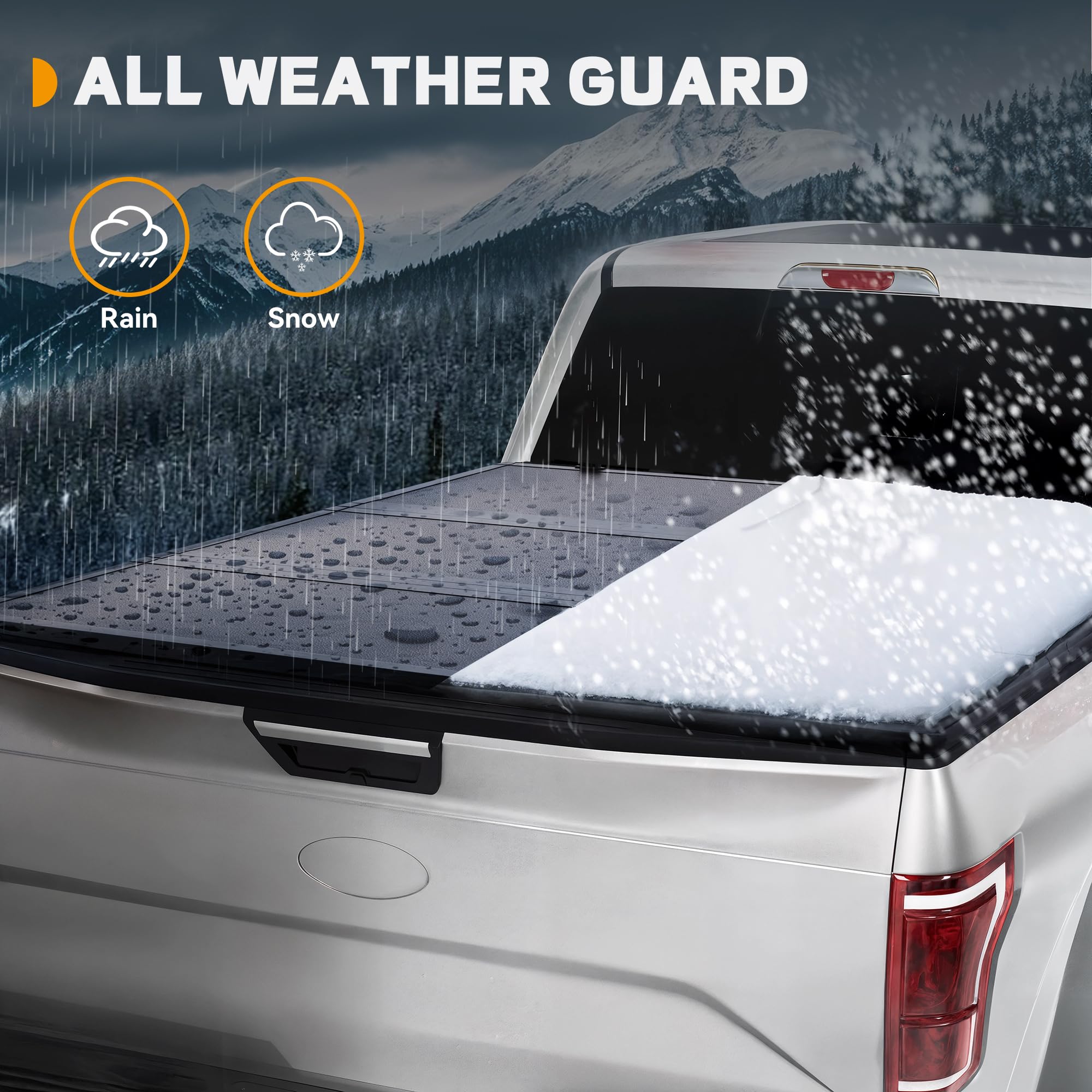 Secure Your Cargo, Shield from the Elements: Turn your truck bed into a safeguarded and weatherproof storage area. Thanks to its tri-fold construction and a tailgate lock, your belongings are shielded from rain, snow, dust, and unwanted attention