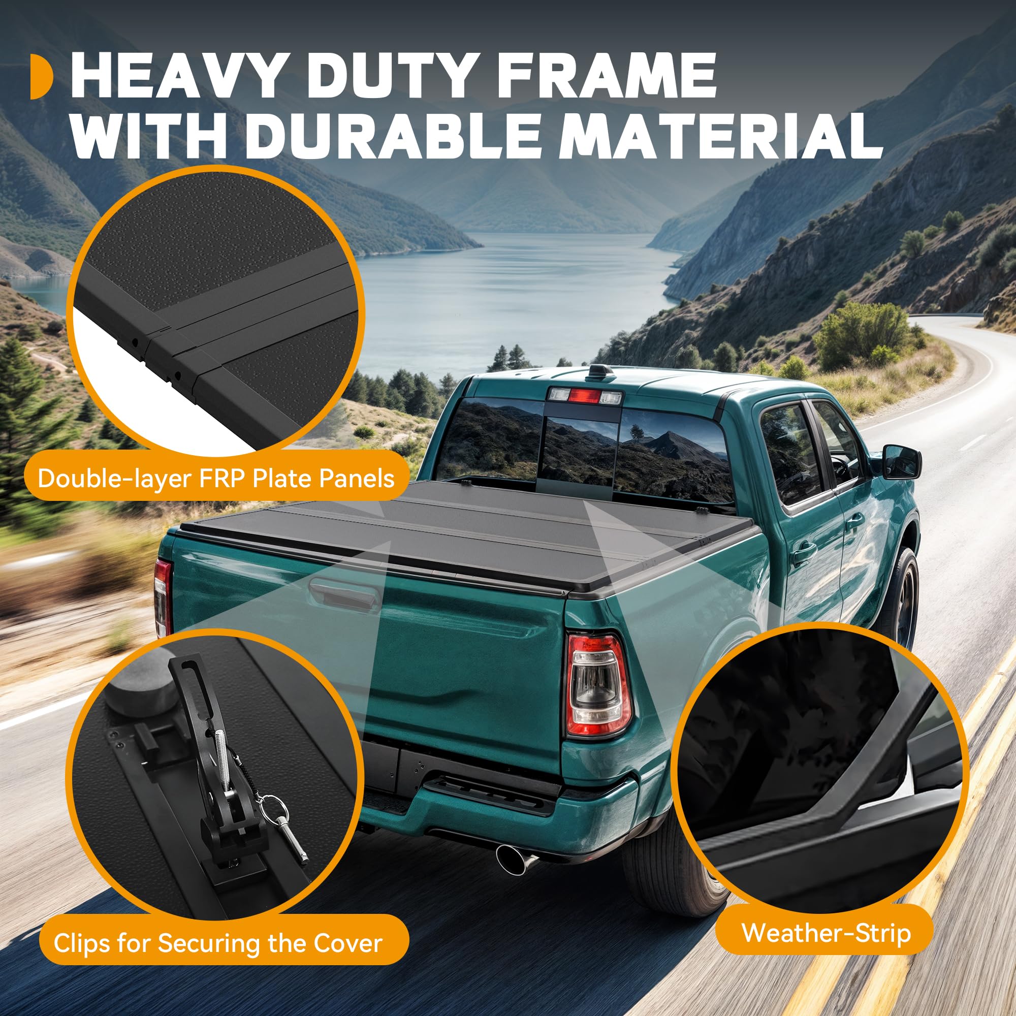 Commercial-Grade Structural Integrity: Constructed with Fiberglass Reinforced Polymer (FRP) and a reinforced PP honeycomb core, this cover withstands 450LB dynamic loading without flexing or scratching. Ideal for hauling tools, equipment, or weekend gear, its rugged build rivals heavy-duty industrial solutions