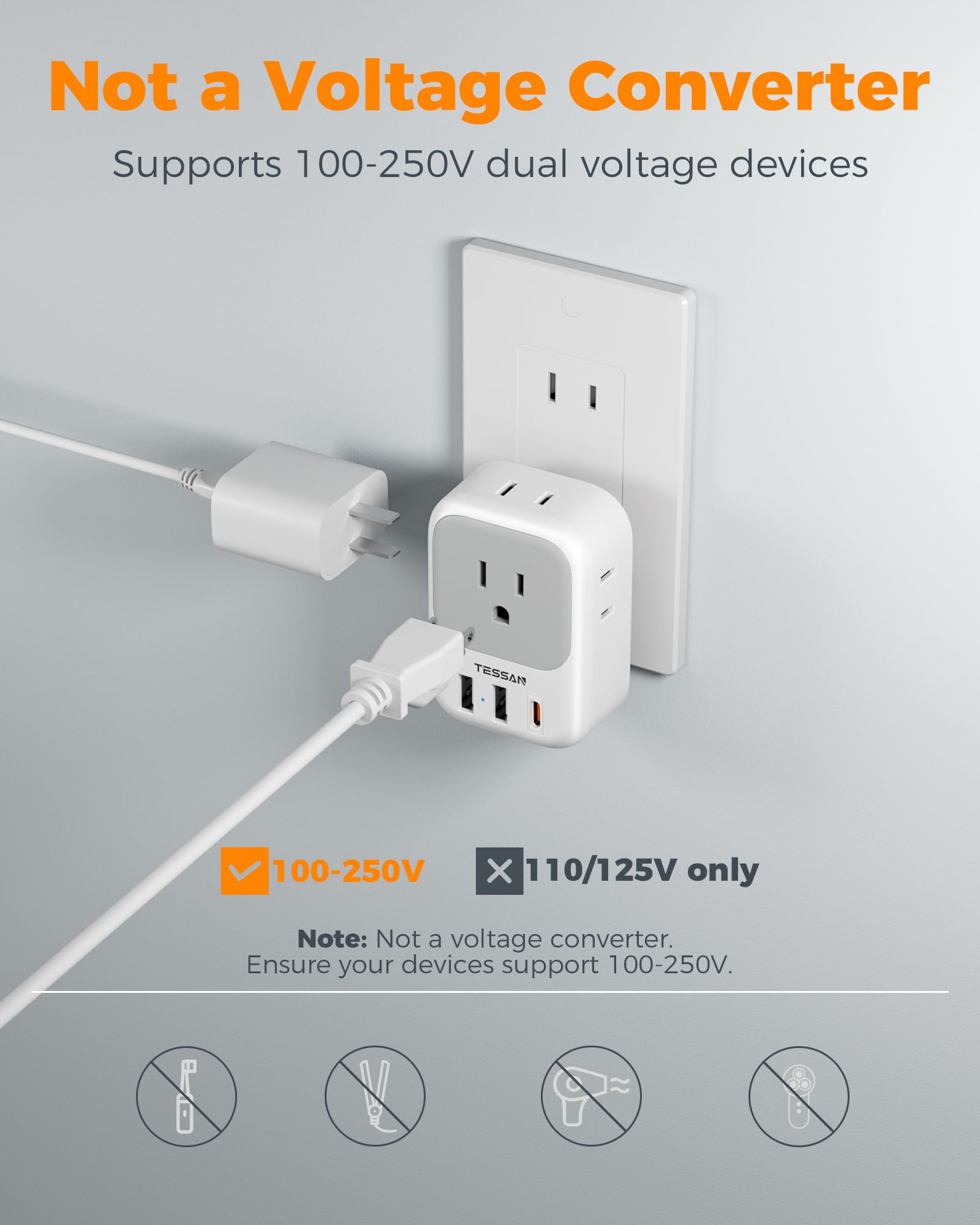 Not a Voltage Converter: It is not a voltage converter; Please make sure your devices especially your hair dryer, straightener, hair curler, electric toothbrush support 100V to 250V Dual Voltage; If your device is 110V or 125V only, you will need a voltage converter