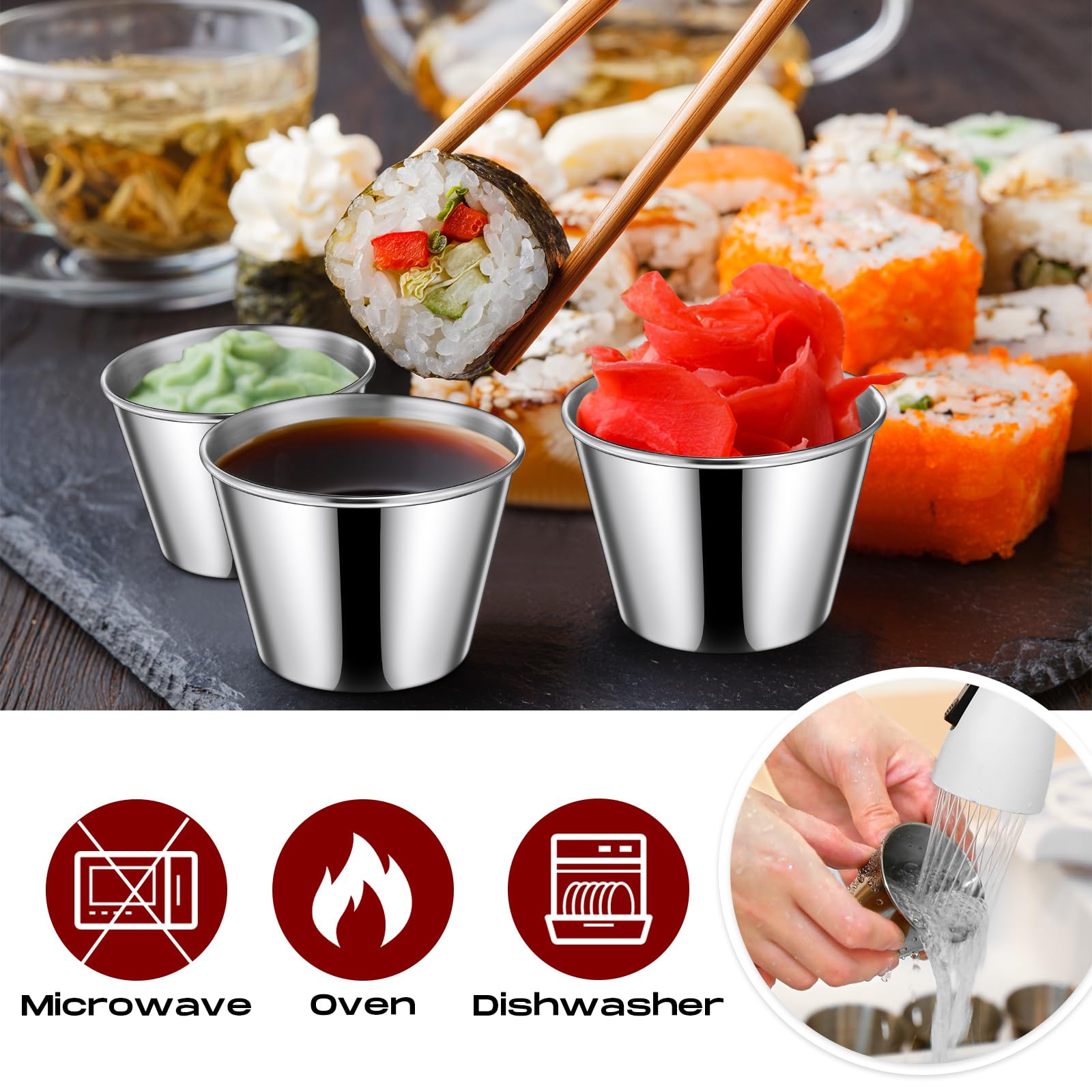 Reliable Quality: our condiment cups are made of quality stainless steel material, which are sturdy, reusable, safe, not easy to rust, break, bend or fade, offering you long time application and a pleasant using experience