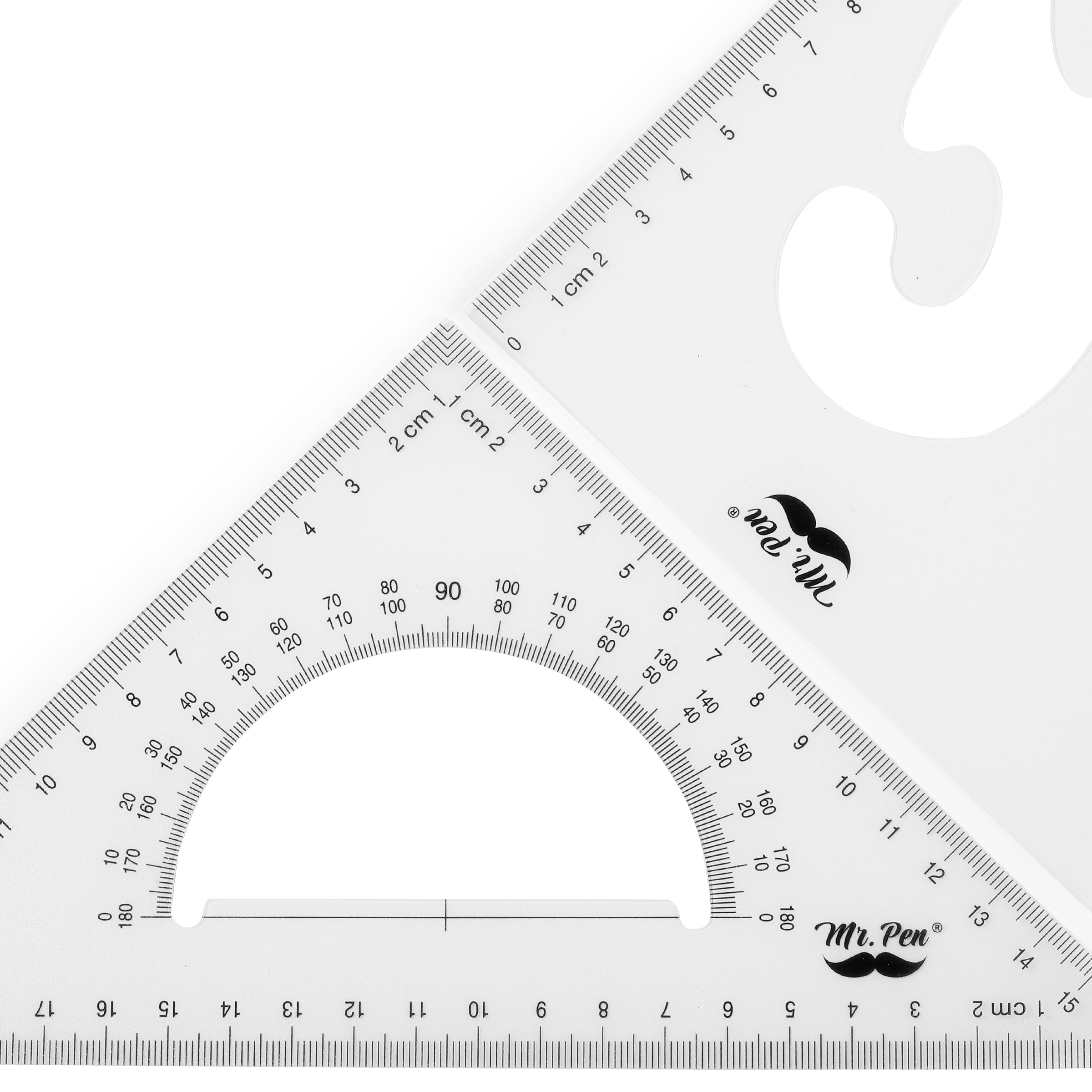 Mr. Pen triangle set includes 2 high-quality triangular rulers, each designed for precision and durability. This set features a 45-degree triangle and a 30/60-degree triangle, both with clear, easy-to-read markings in centimeters and inches for accurate measurements. The built-in protractor on one of the triangles allows for quick angle measurements, making it ideal for geometry, drafting, and engineering tasks. Made from durable, transparent plastic, these triangles are lightweight and resistant to breaking, ensuring long-lasting use. The set also includes French curves integrated into the design, providing added versatility for drawing smooth, curved lines and complex shapes.