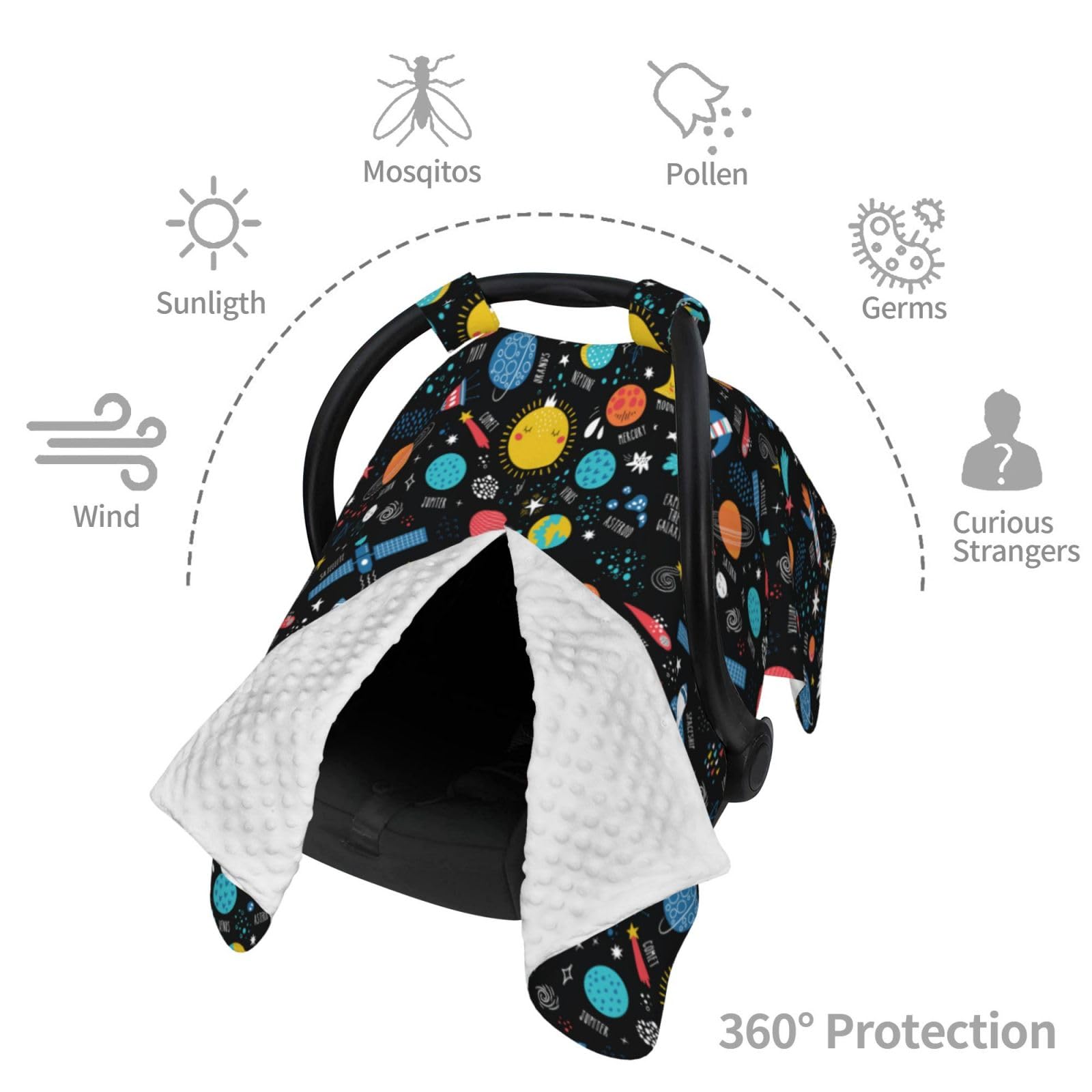 Help Baby Sleep: The car seat cover provide a warm, dark ,quiet environment for your baby to sleep in the car seat, allows you to go to anywhere with no worry.