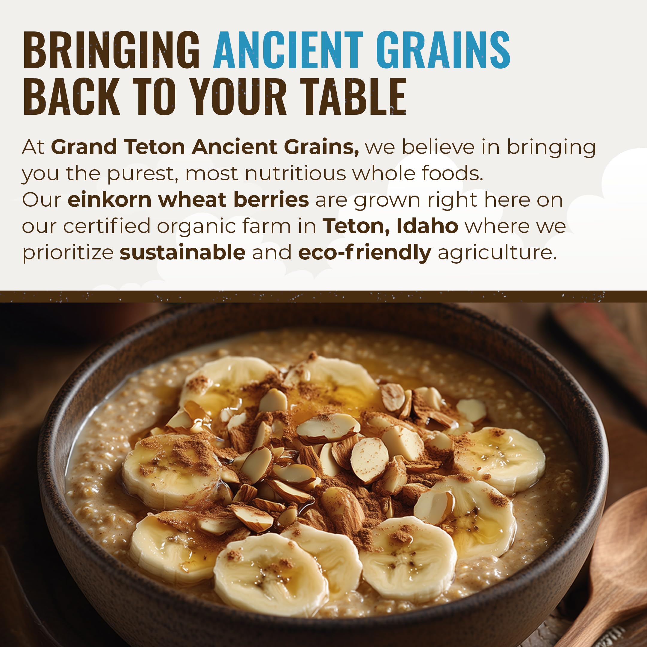 FARM TO TABLE GRAINS - All Grand Teton Ancient Grains products are grown with care on a family farm at the base of the Grand Teton foothills in Eastern Idaho to bring the wholesome goodness of organically-grown ancient grains like whole grain einkorn to your family’s dinner table!