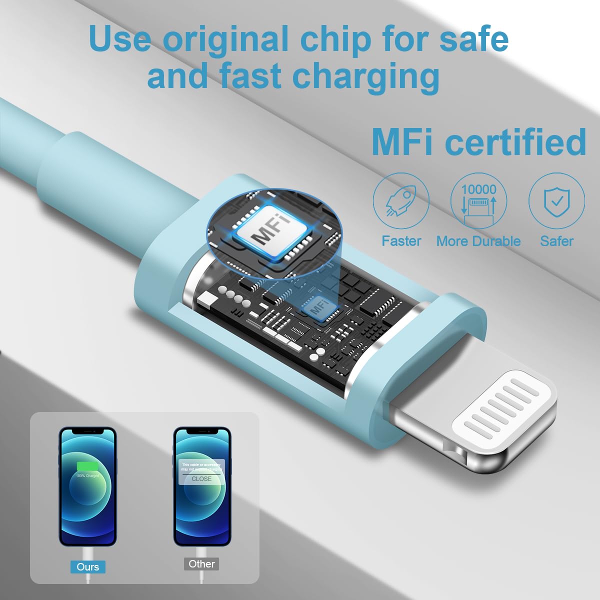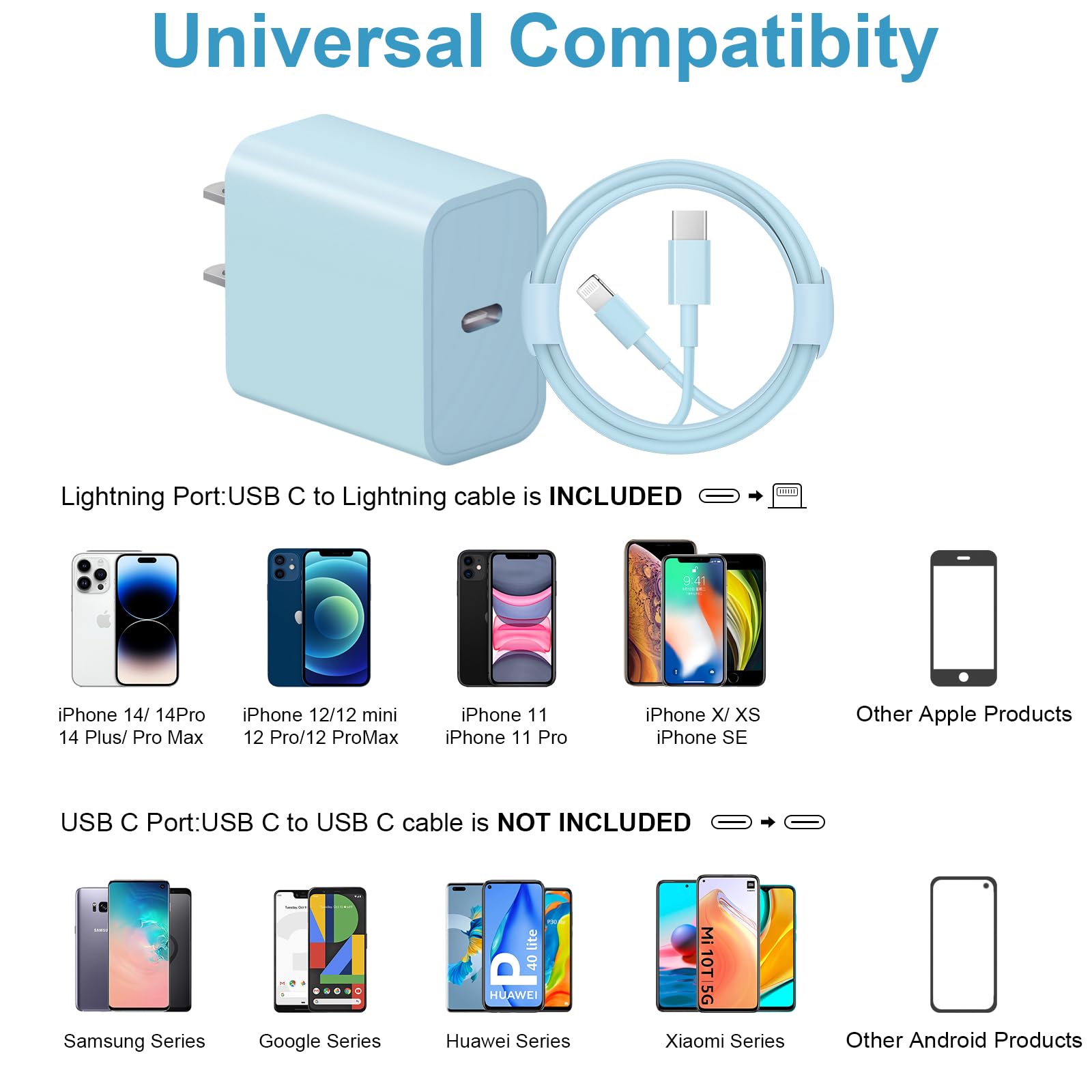 【What you will get】 1 * 6 feet long MFI-certified fast charging cableand 1*20W super rapid fast charging USB C