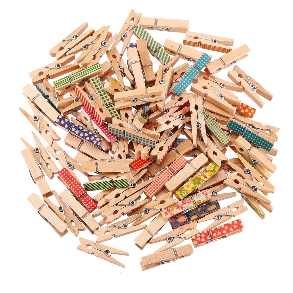 ❤PACKAGE-The package included 100pcs Colorful Wooden pegs in a pack(Random color).Fashion desigh will give you different feeling of your photos and card making.