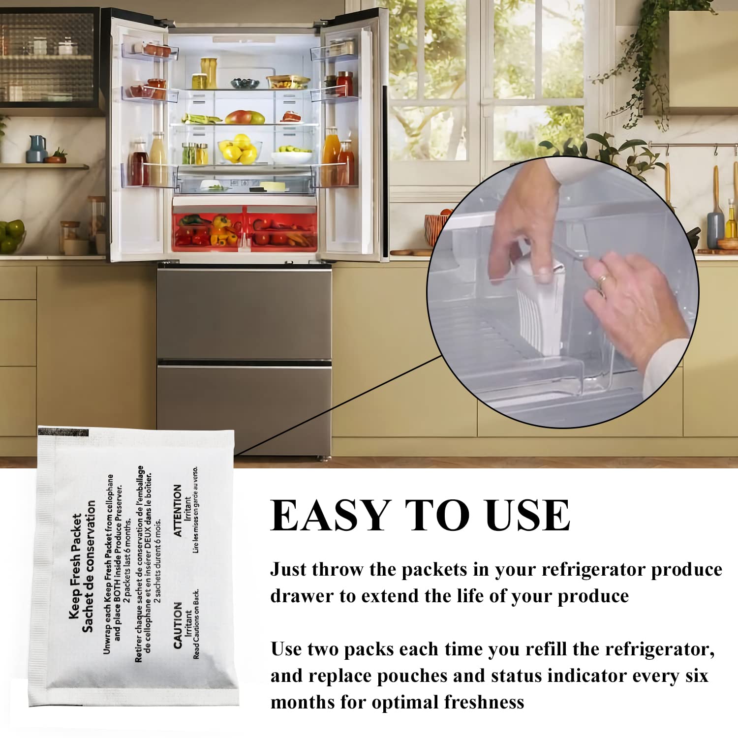 COST-EFFECTIVE GOODS - Package includes 8 keep fresh packets with 4 complete replacements for your system at an incredible value. Dimensions: H: 4.0" x L: 2.7" x W: 0.2" (Please refer to the picture display for details). 2 refrigerator produce preserver replacement keep odor away from your refrigerator for 6 month. Spare keep fresh packets allow you to replace any time, saving your time and energy. It's the ideal and perfect accessory for your Fresh Flow refrigerator