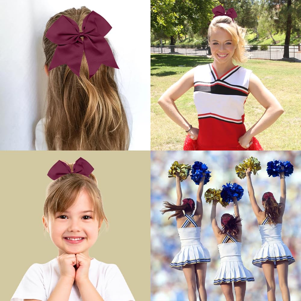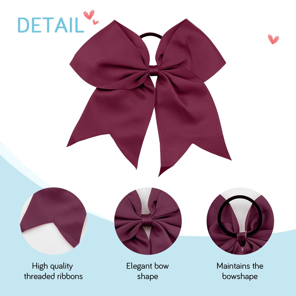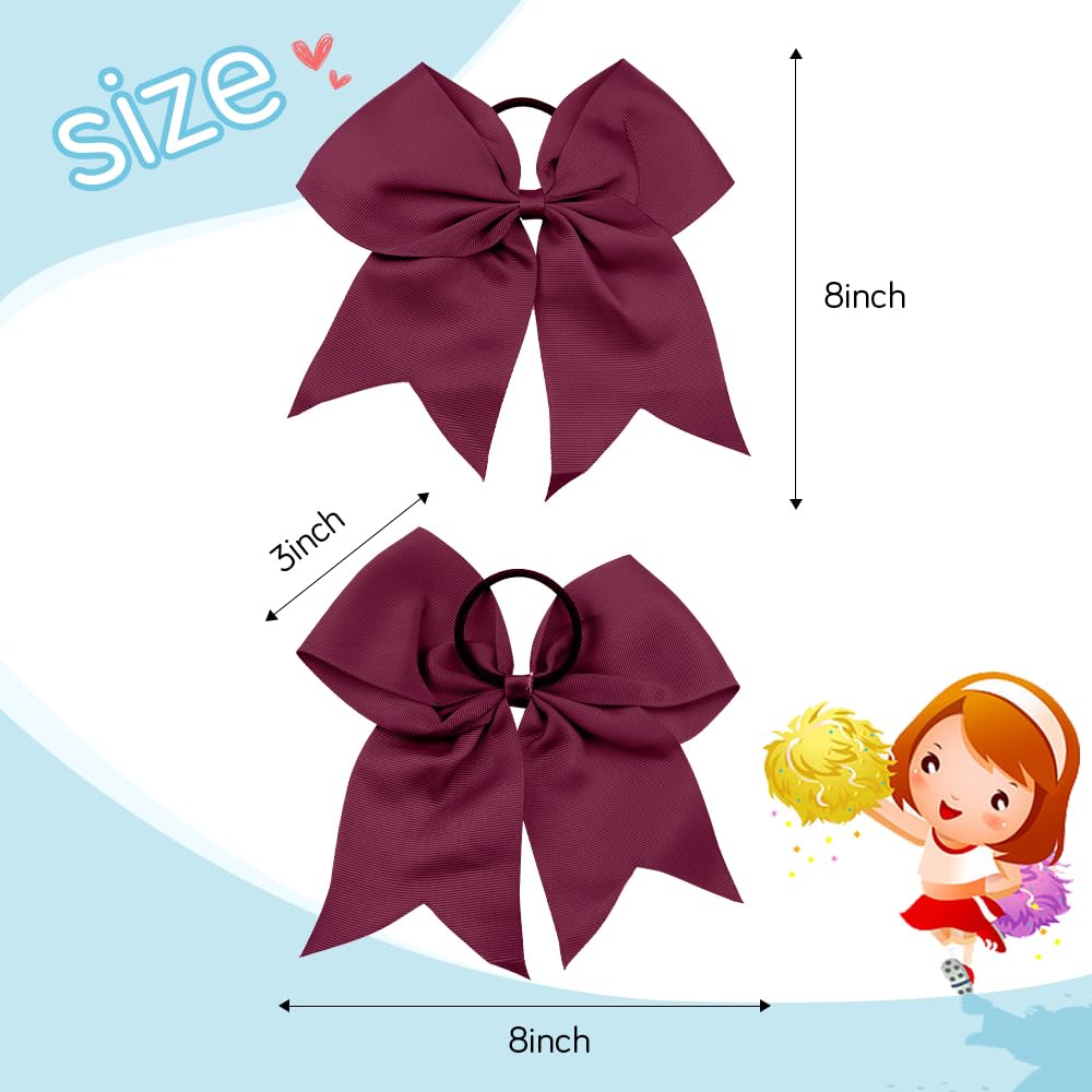 Great quality: 2pcs jumbo 8 inch hair bows for girls are made of high quality 3 inch wide grosgrain ribbon with elastic ponytail holder, light weight about 12g/pc, 100% handmade cheer bows with beautiful shape, the workmanship is excellent, the bow and the hair ties are well glued, and you don't have to worry about falling off, they stay in the ponytail well, girls can jump and shout when they wear it.girls bows for hair, is a favorite hair accessory for all teen girls.