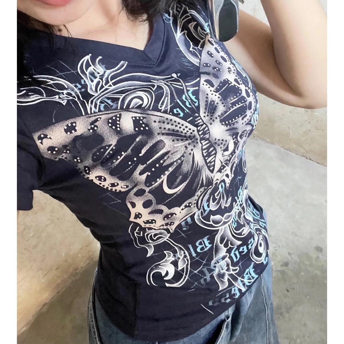 Feature: grunge clothing, emo tops for teen girls, emo outfits for women, 2000s outfits for women, goth clothes for women, y2k shirts, y2k outfits for women, y2k fashion, graphic baby tees for women y2k, women graphic tees, graphic tees for teens, crop tops for teens