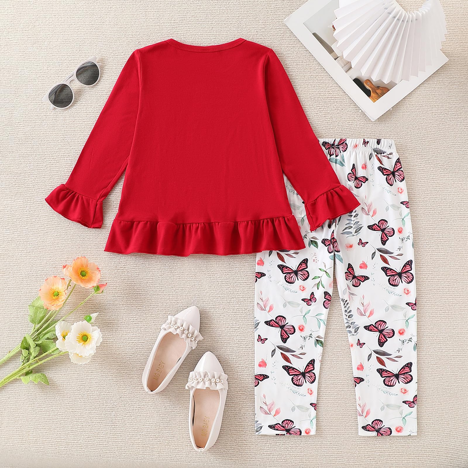 【Comfortable Fabric】Made from soft, breathable cotton blend, this girls' clothing set ensures all-day comfort—perfect for school, travel, or everyday wear.